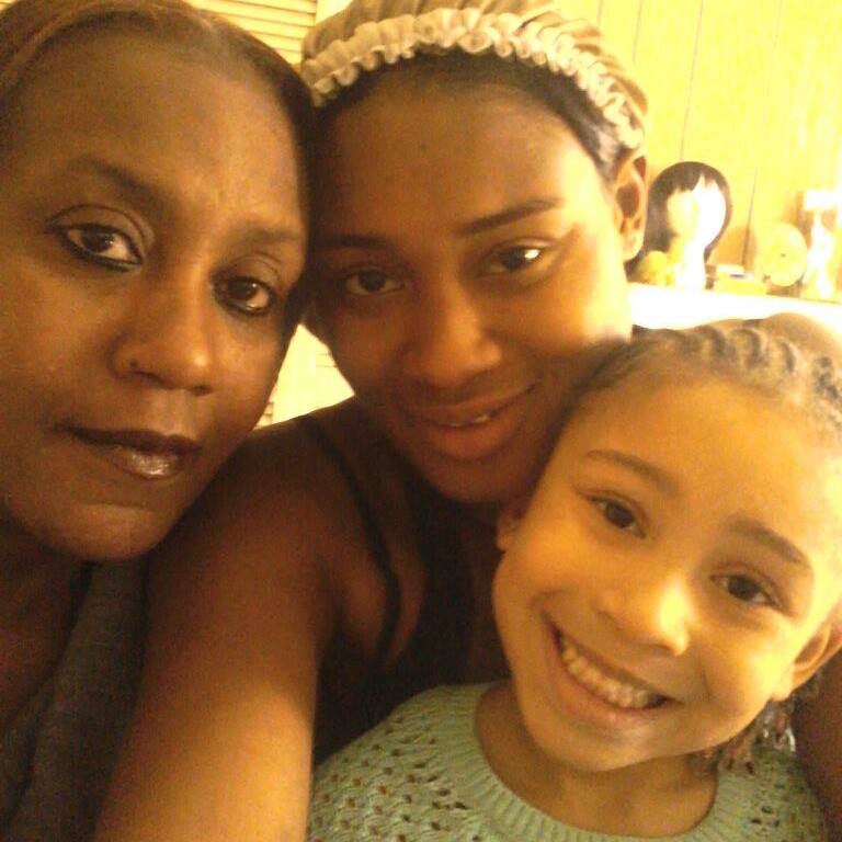 Portrait of two women and a child embracing.