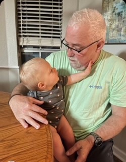 Painting of a grandfather holding a baby.