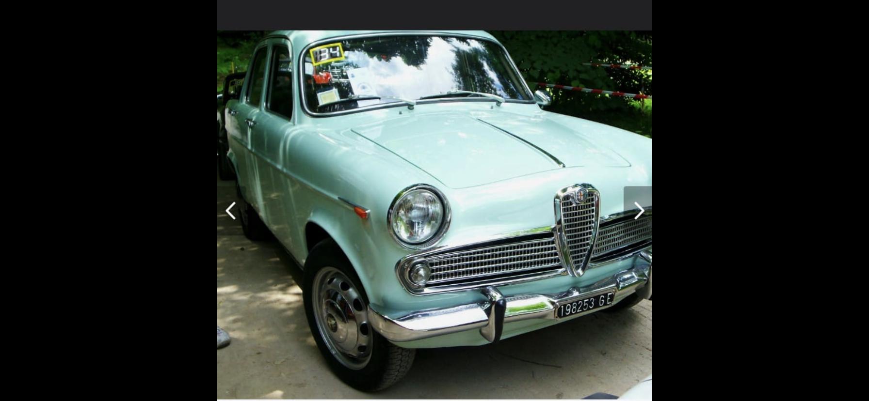 Painting of a light blue vintage car parked by the sea with a hillside town in the background.