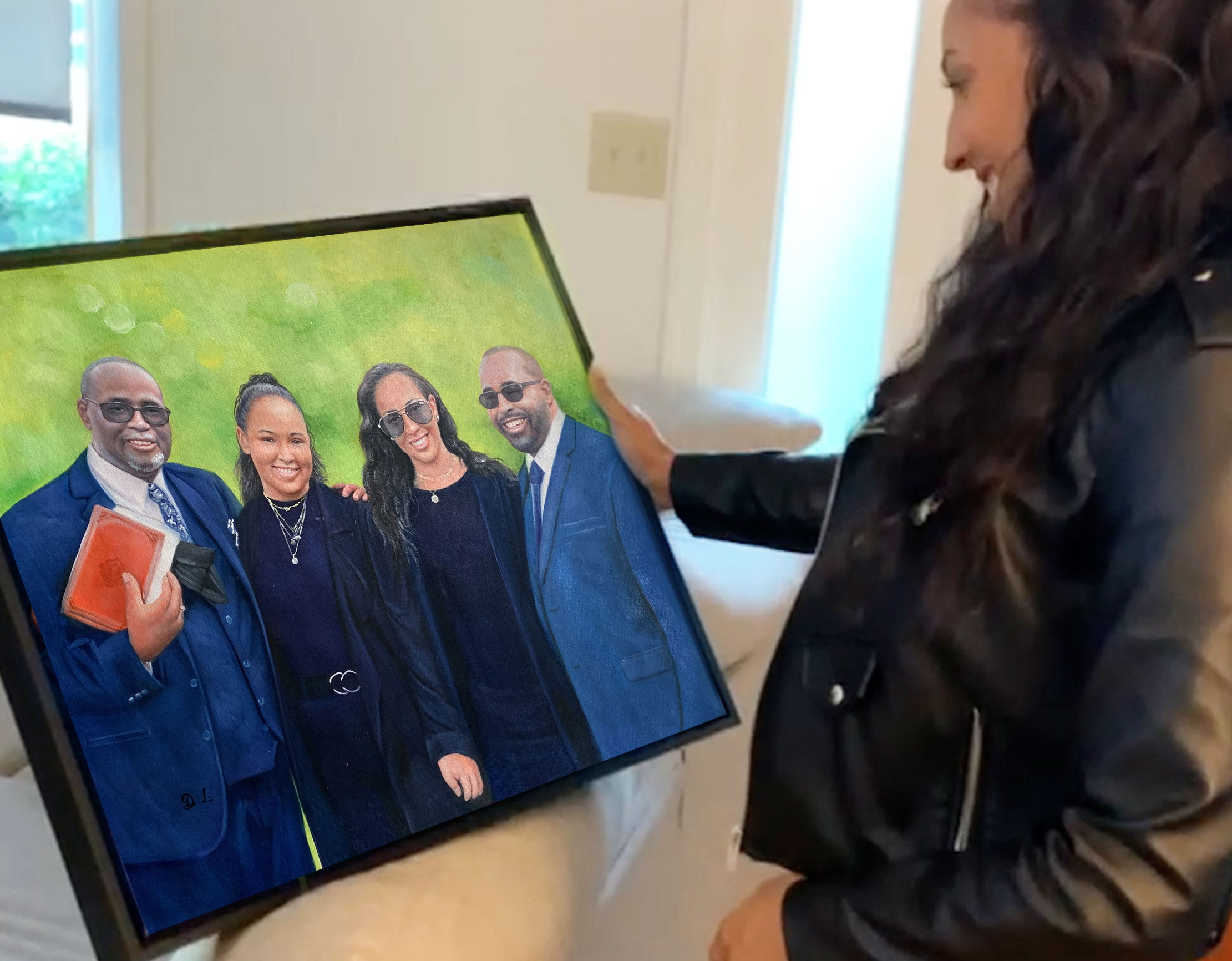 "My 17-year-old Little brother passed away 8 years ago. My family and I never really took family pictures. The only ones I had of all of us we were both really young. I was able to combine and send in our pictures as older adults and Cody created this beautiful painting for my mom. She absolutely loved it."