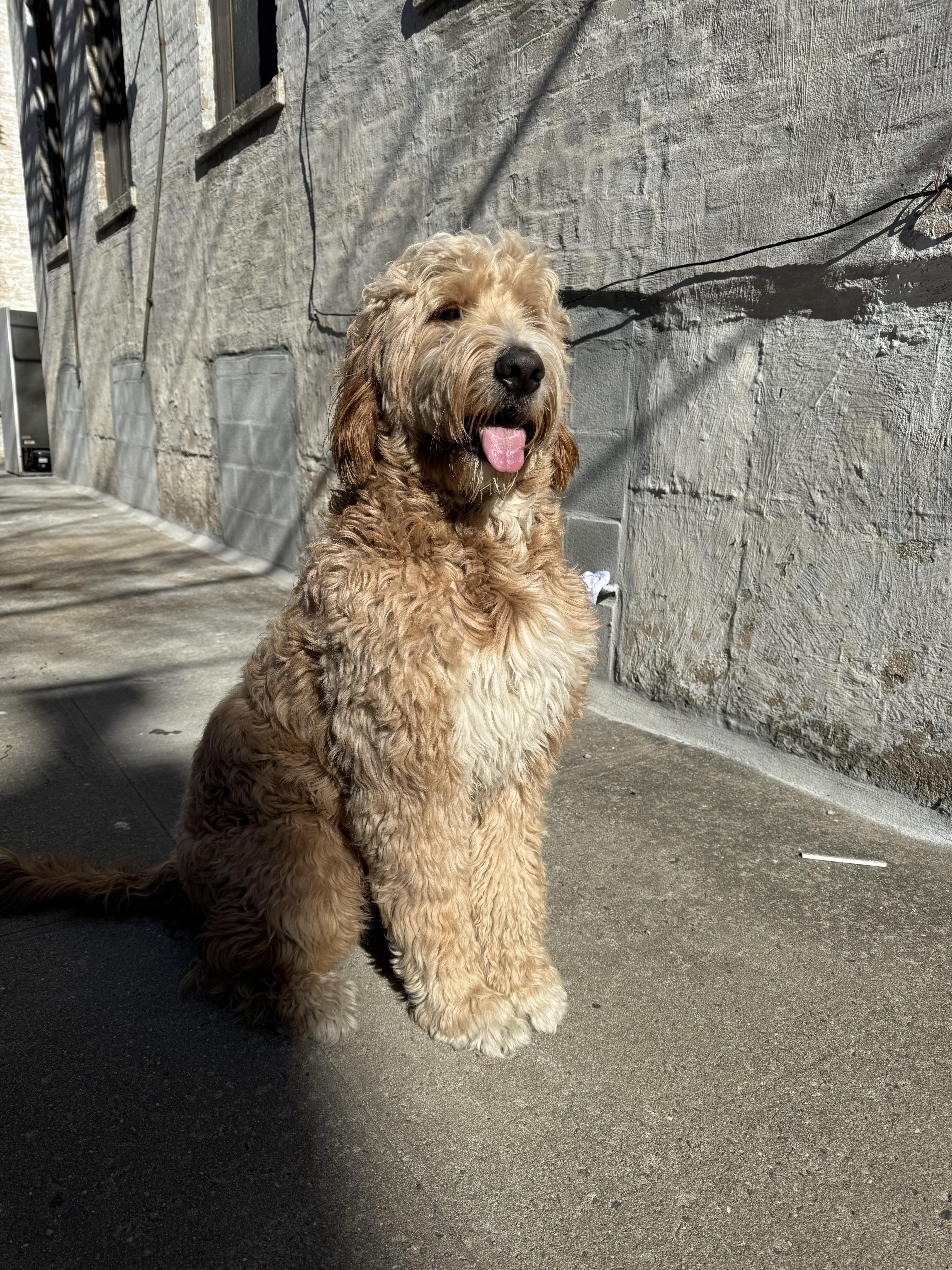 Black and white drawing of a Goldendoodle and a German Shepherd.