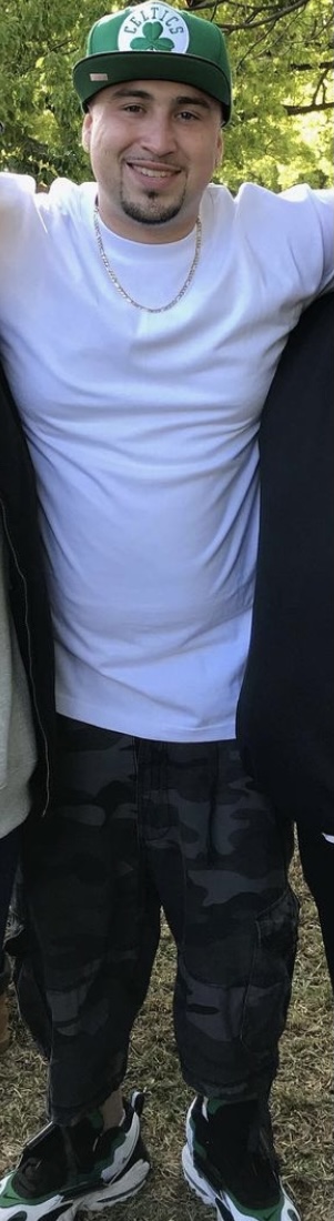Black and white pencil drawing of a man with angel wings, a man holding an infant and toddler, and a cloudy sky background.