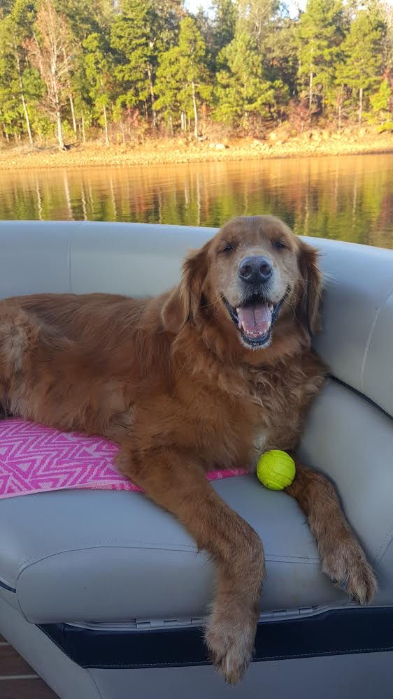 Black and white pencil drawing of a Golden Retriever lying on a couch with a ball.