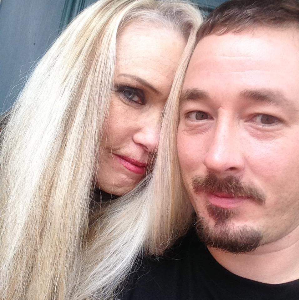 Black and white pencil sketch of a couple`s faces.