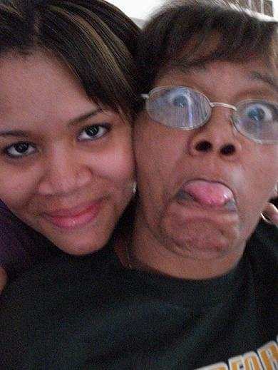Black and white pencil drawing of two people, one woman smiling subtly and the other making a silly face with their tongue out.