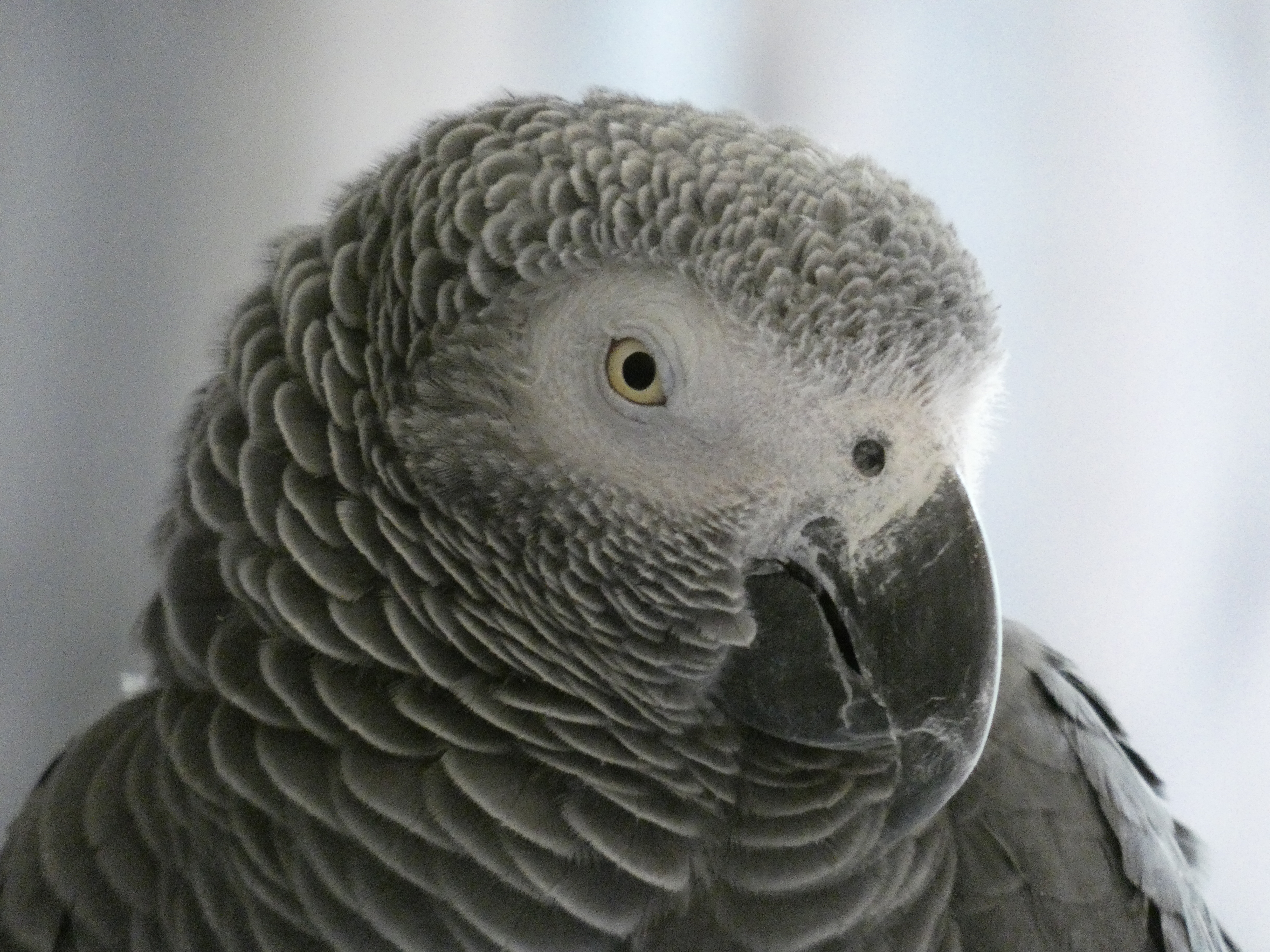 Pencil sketch of a grey parrot and several cats and dogs.