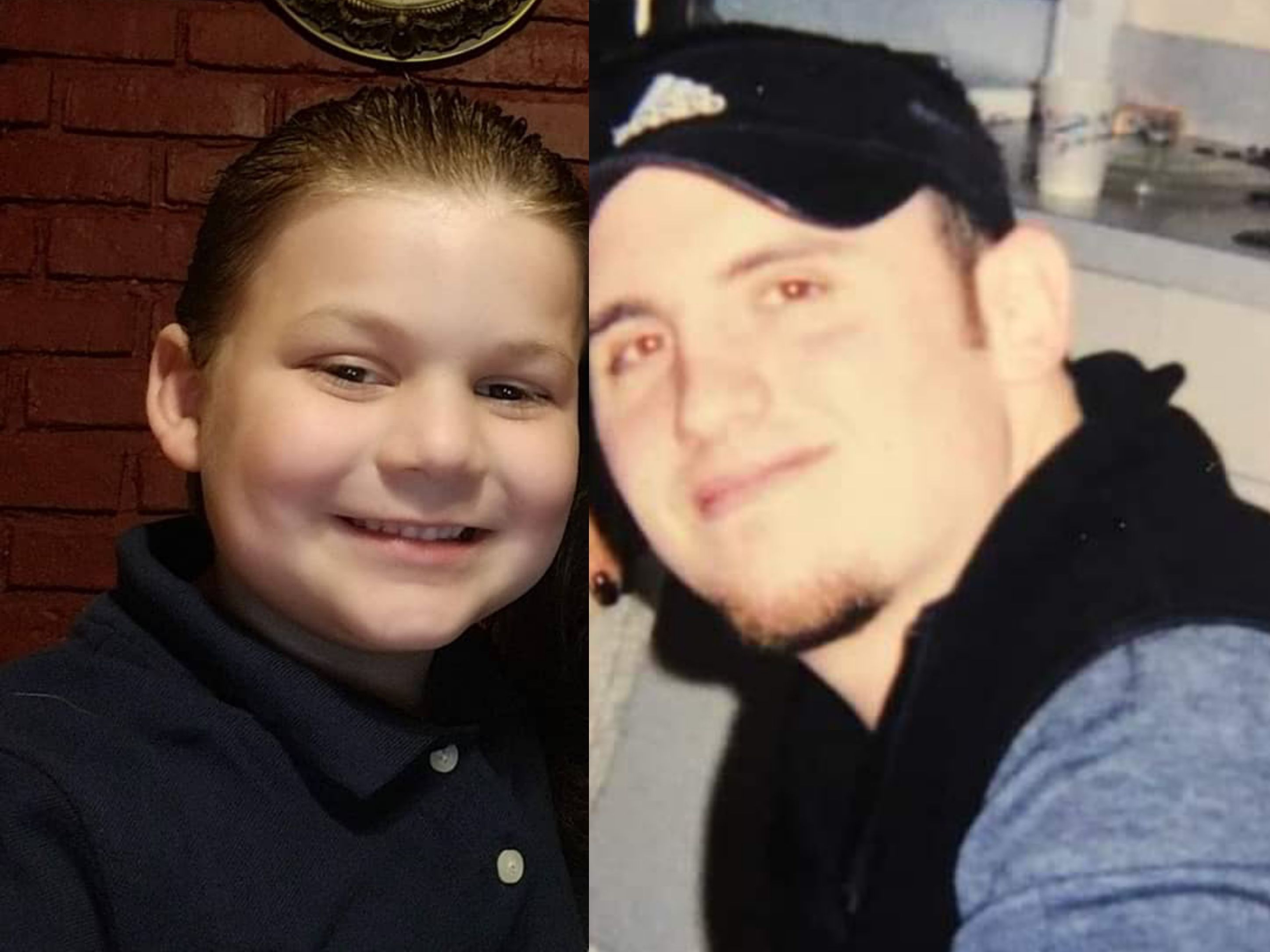 Black and white charcoal portrait of a man and child.