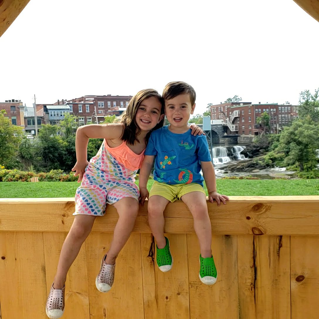 Black and white pencil sketch of a grandfather with a young girl and boy.