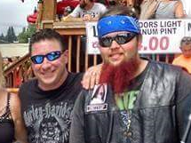 Black and white charcoal drawing of two men wearing sunglasses, one with a beard and bandana.