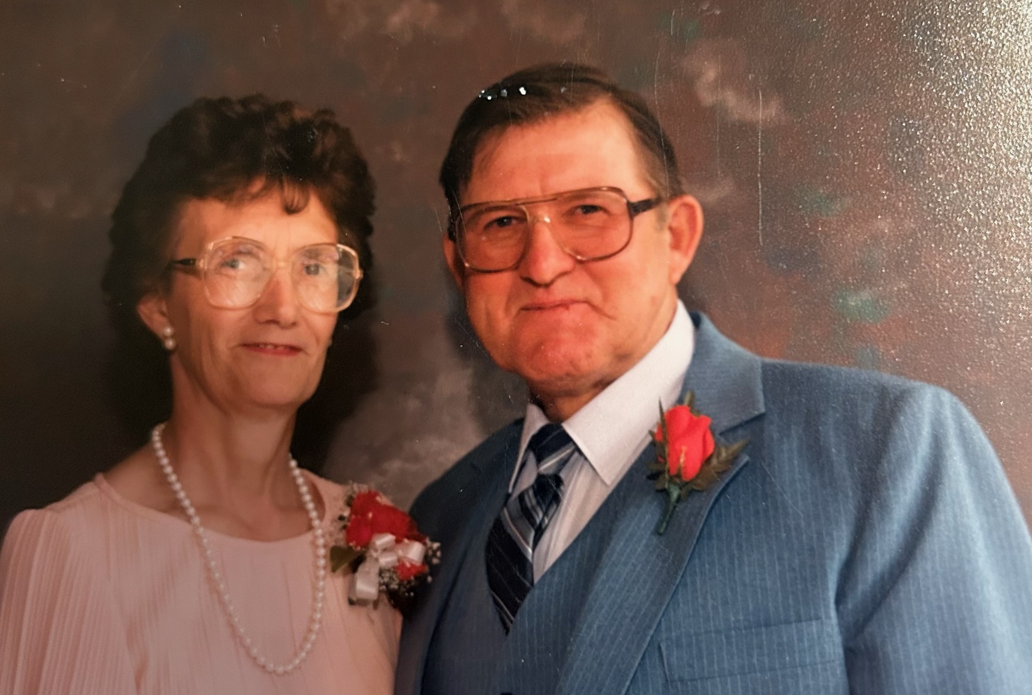 Colored pencil portrait of an elderly couple.