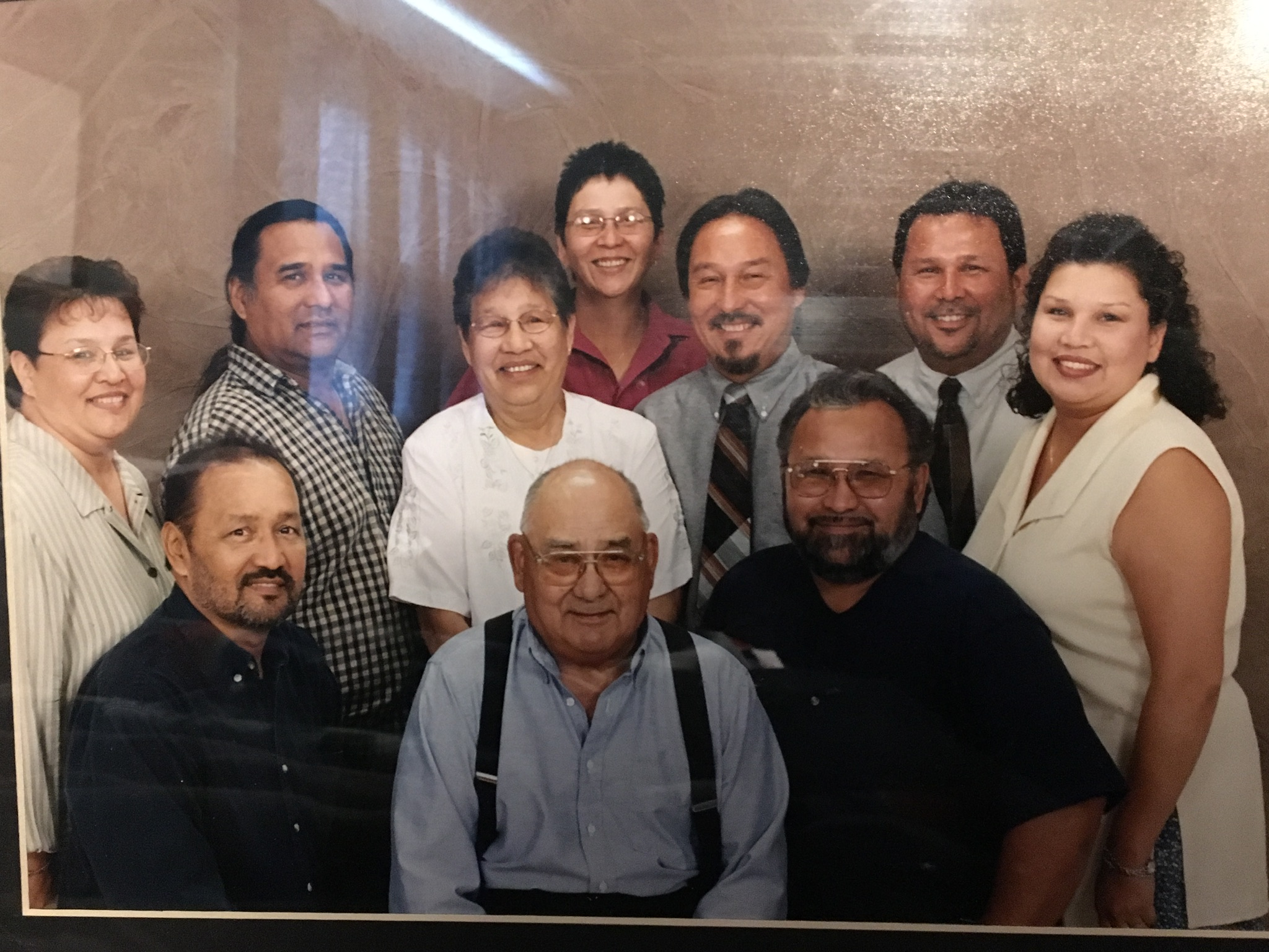 Colored pencil portrait of three generations of a family: a young man, a baby, and an older man.