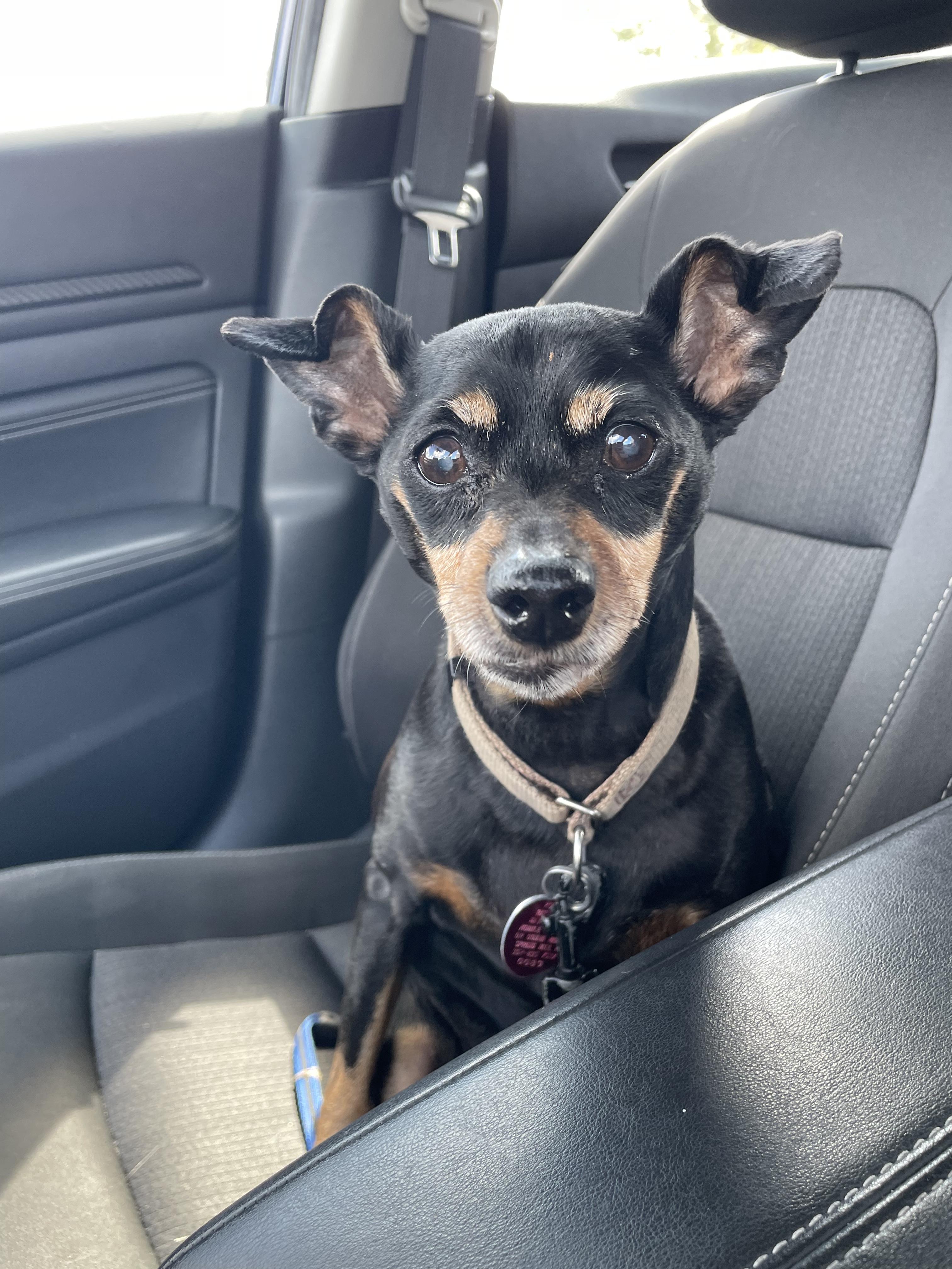 Colored pencil drawing of four dogs: a Rottweiler, Pit Bull, Chihuahua mix, and dachshund mix.