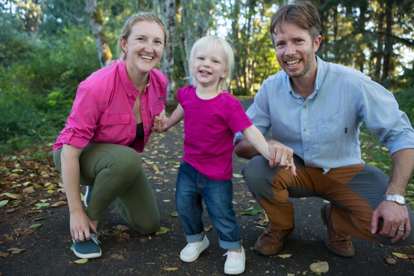 Family portrait in colored pencil, two men and a toddler.