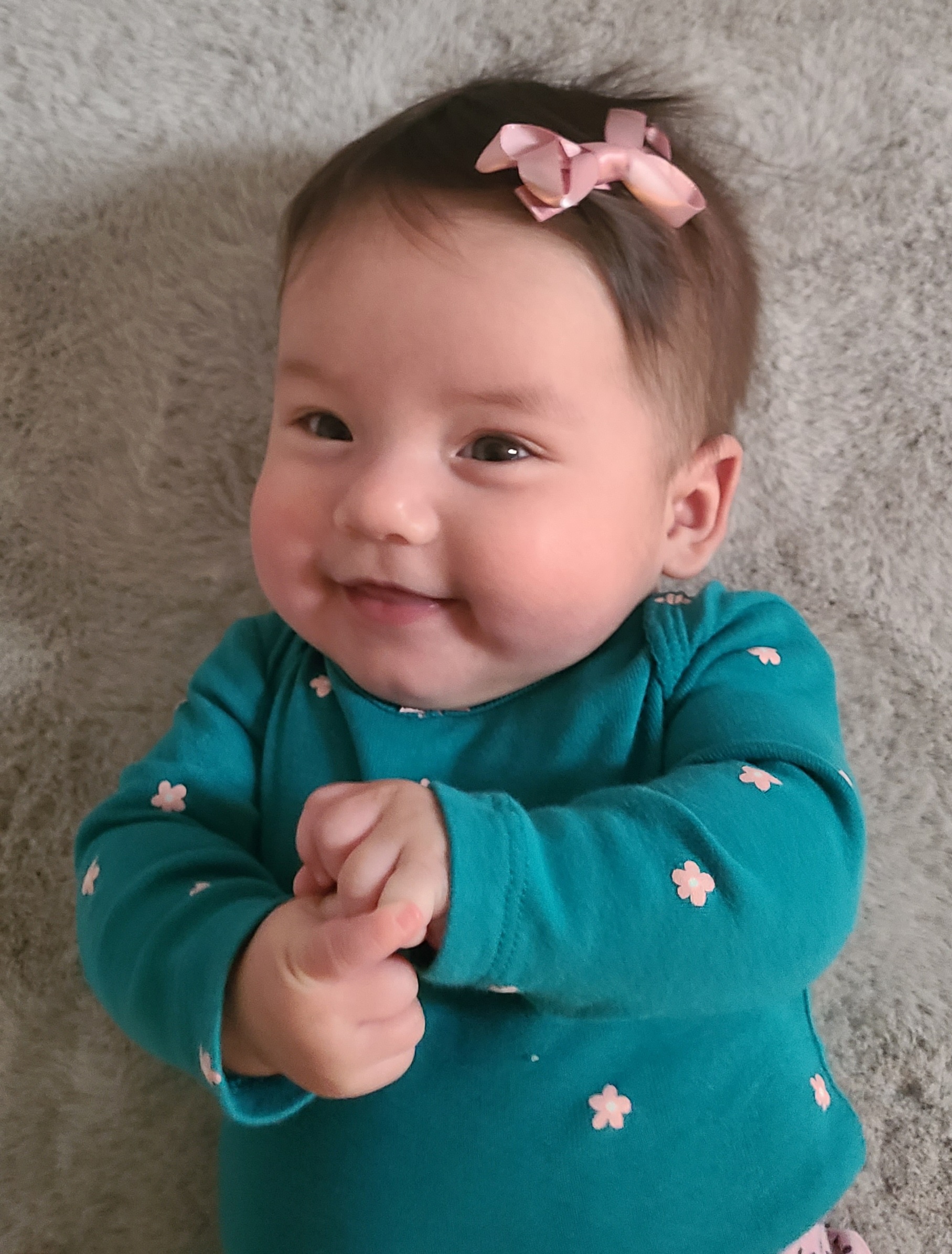 Colored pencil portrait of a smiling toddler wearing a rainbow-patterned sweater.