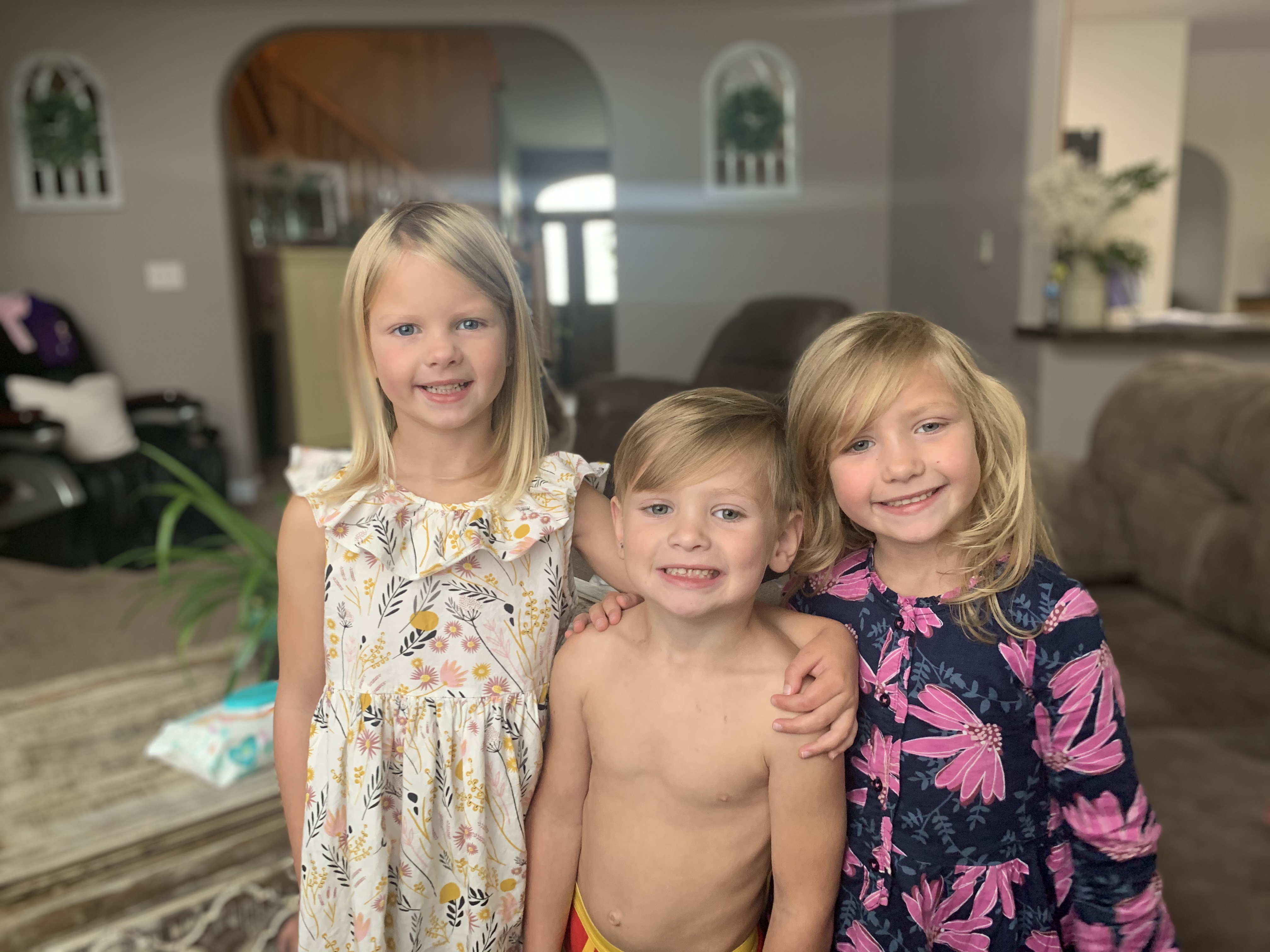 Colored pencil portrait of an older man with a young boy and girl.