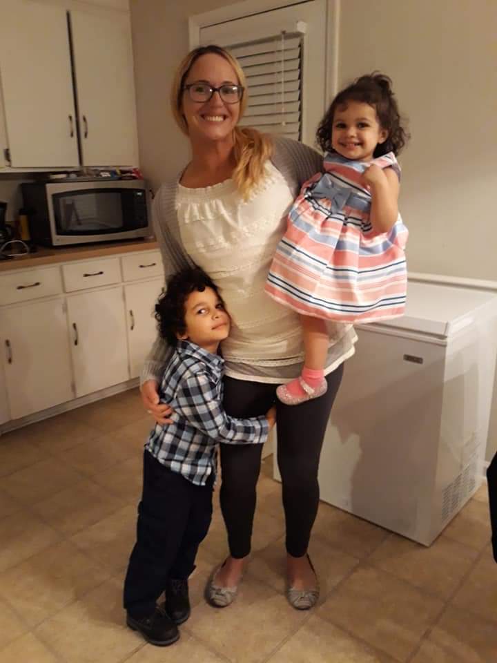 Colored pencil drawing of a woman kissing a baby on the cheek.
