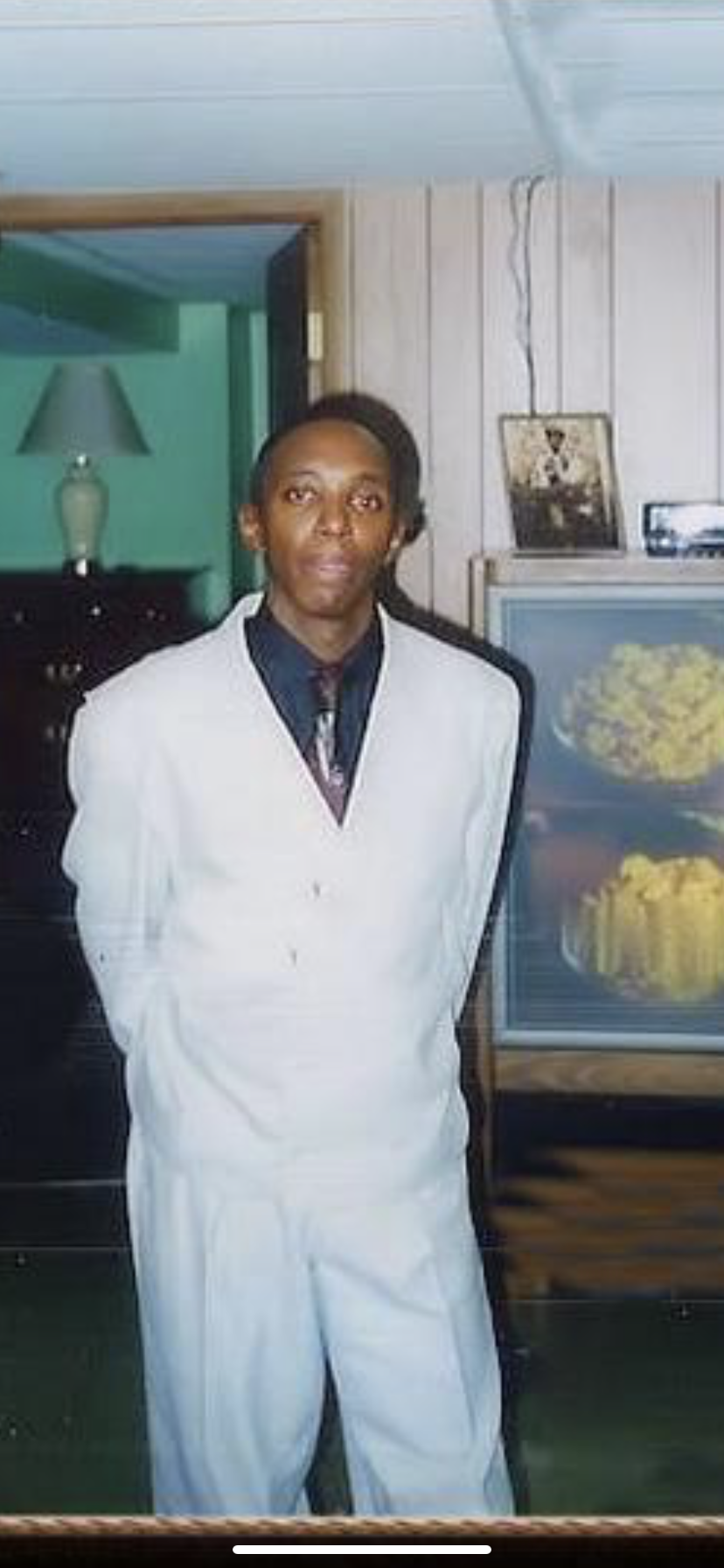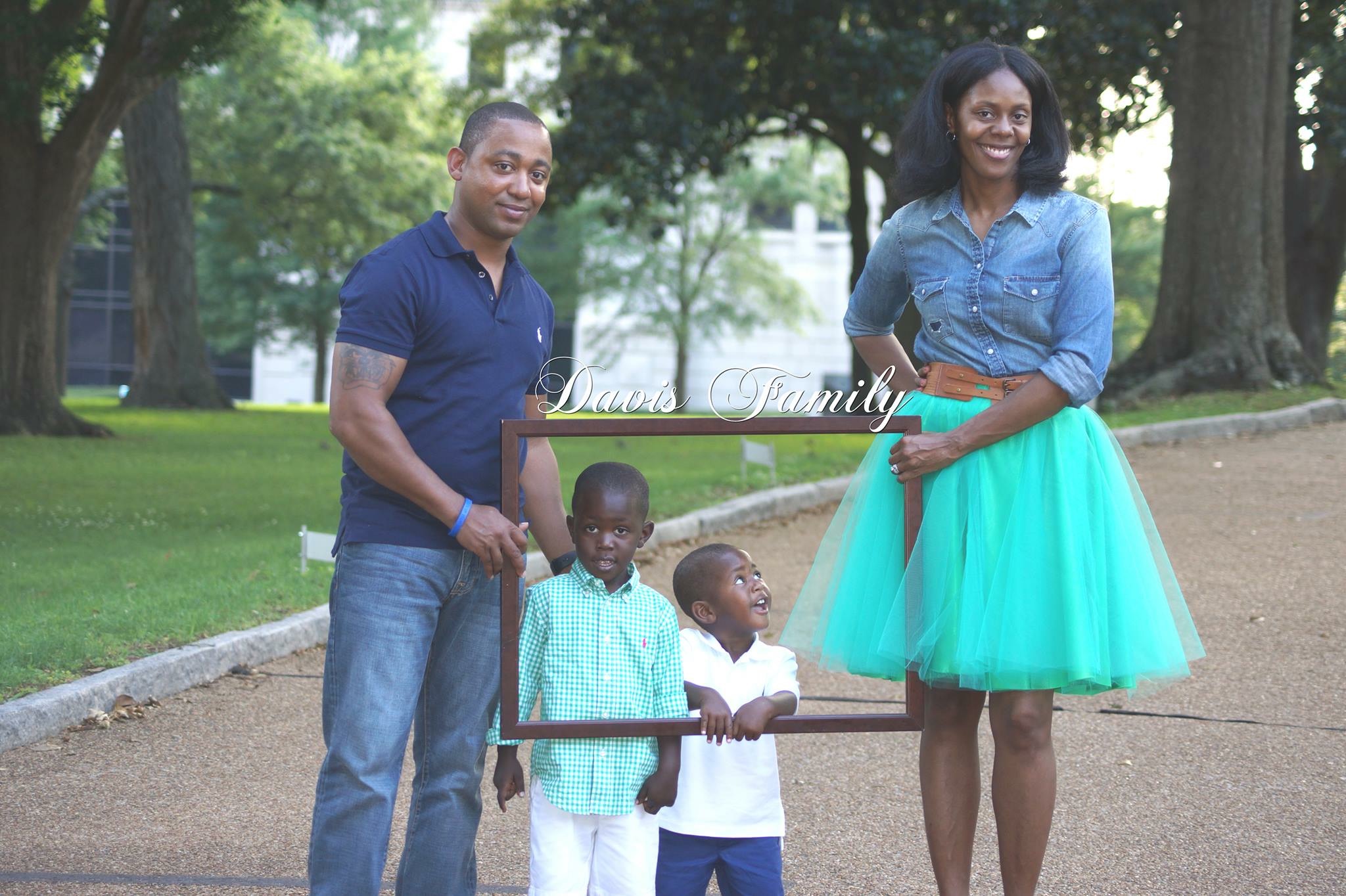 Portrait drawing of two Black men, one wearing glasses, with an out-of-focus green background.