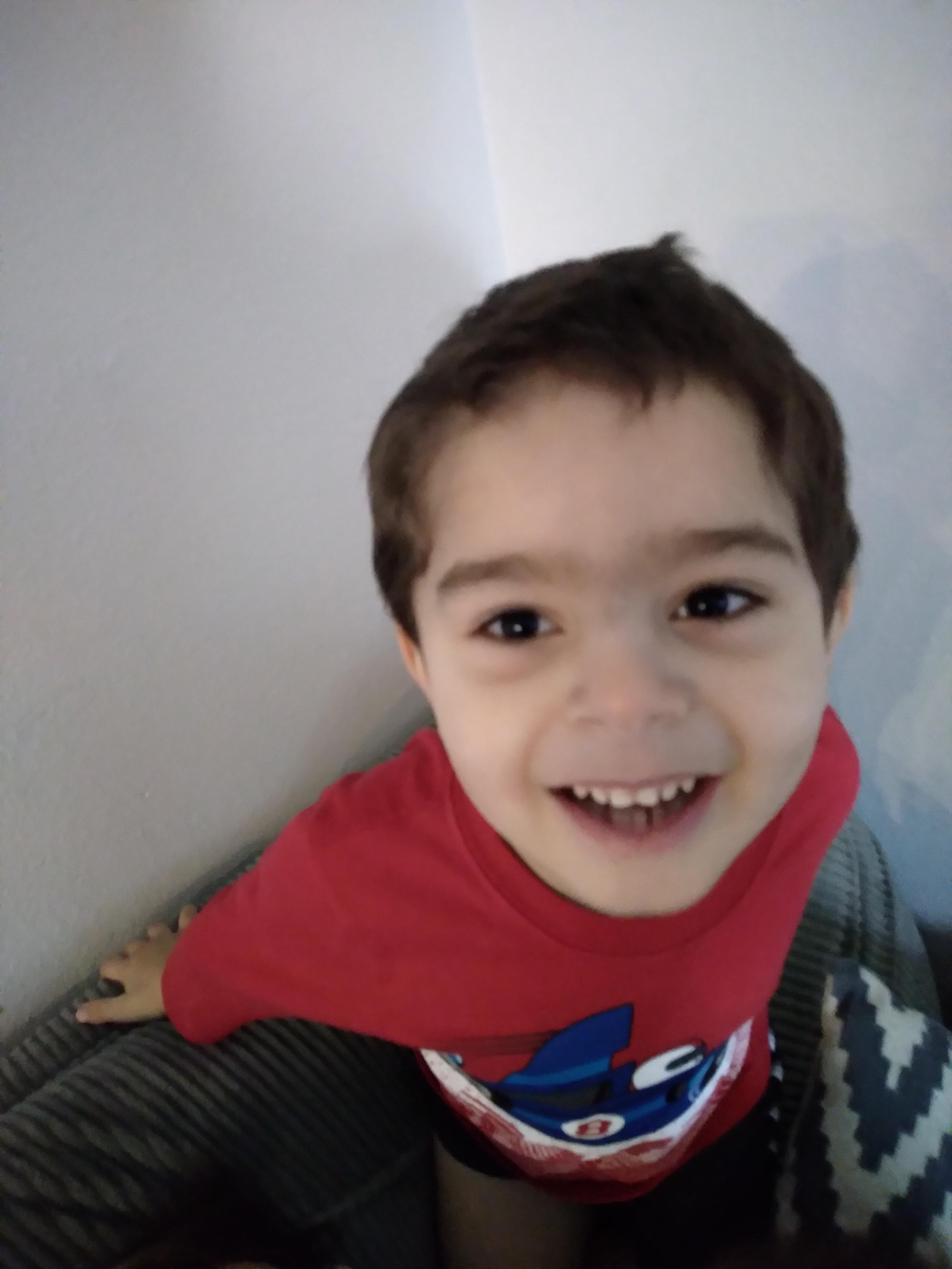 Colored pencil drawing of a young man revealing a Superman logo on his shirt.