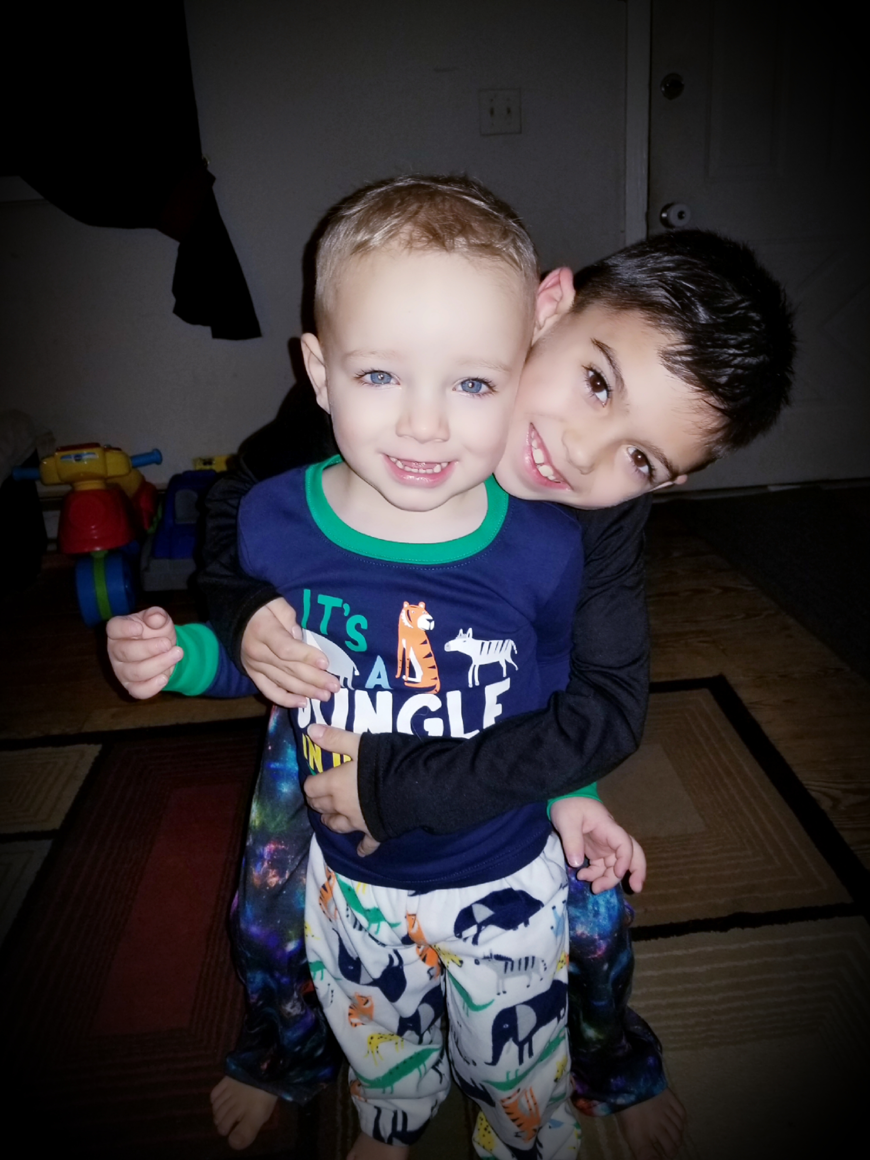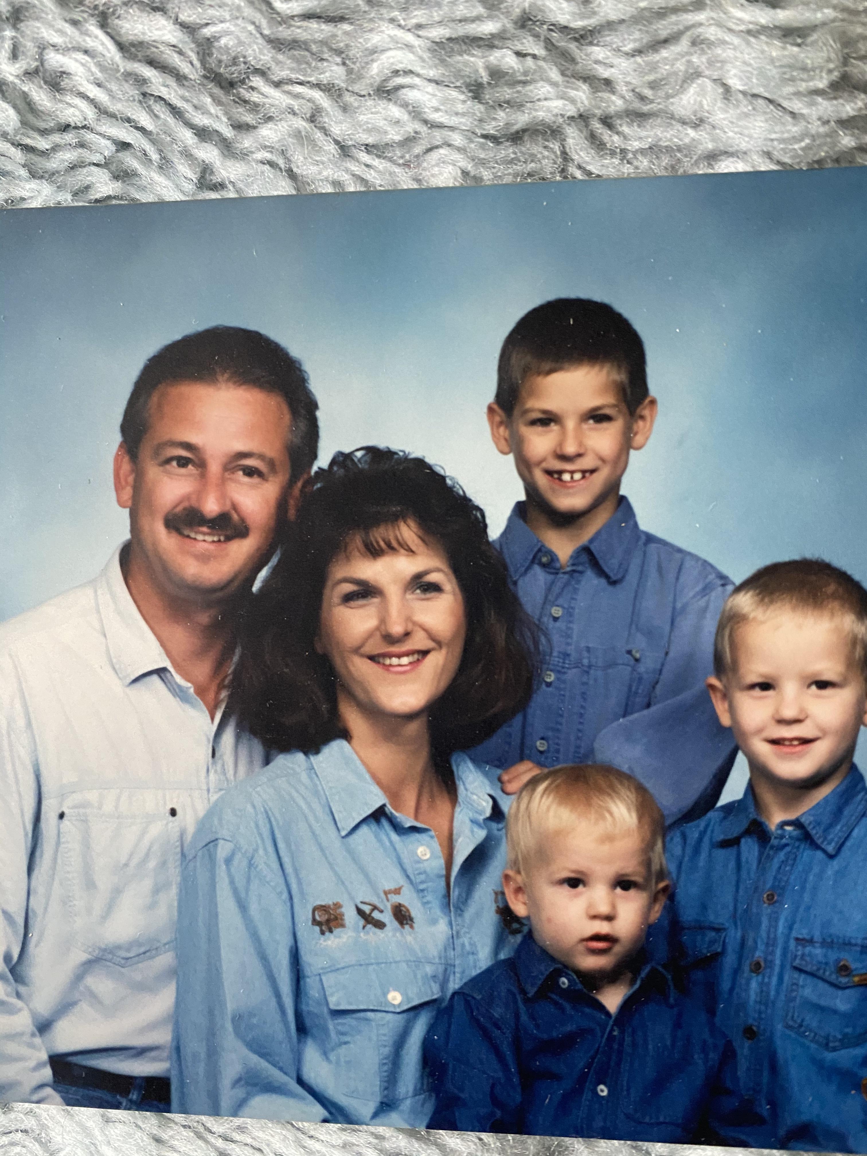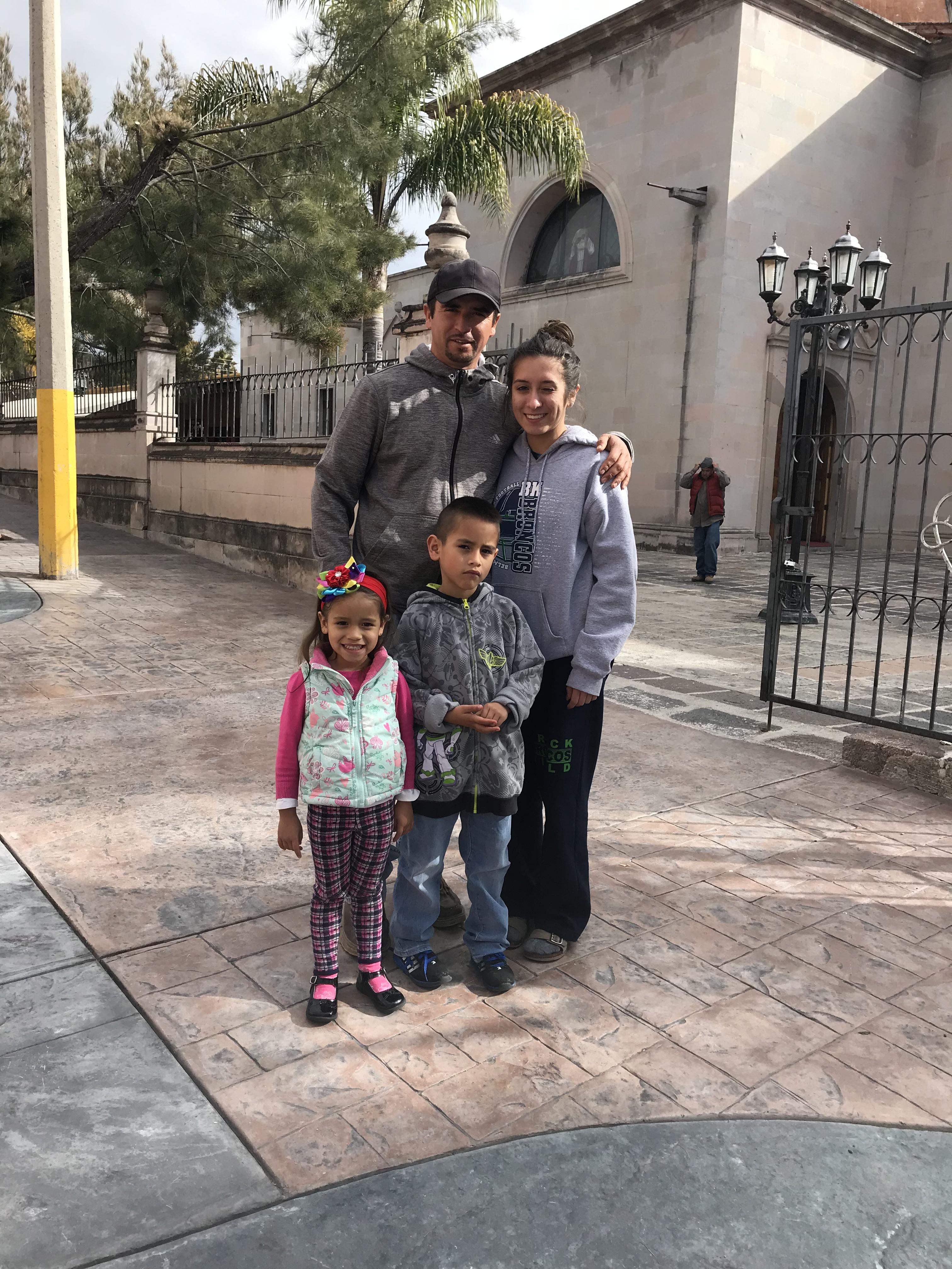 Color pencil drawing of a grandfather holding a baby and two young children.