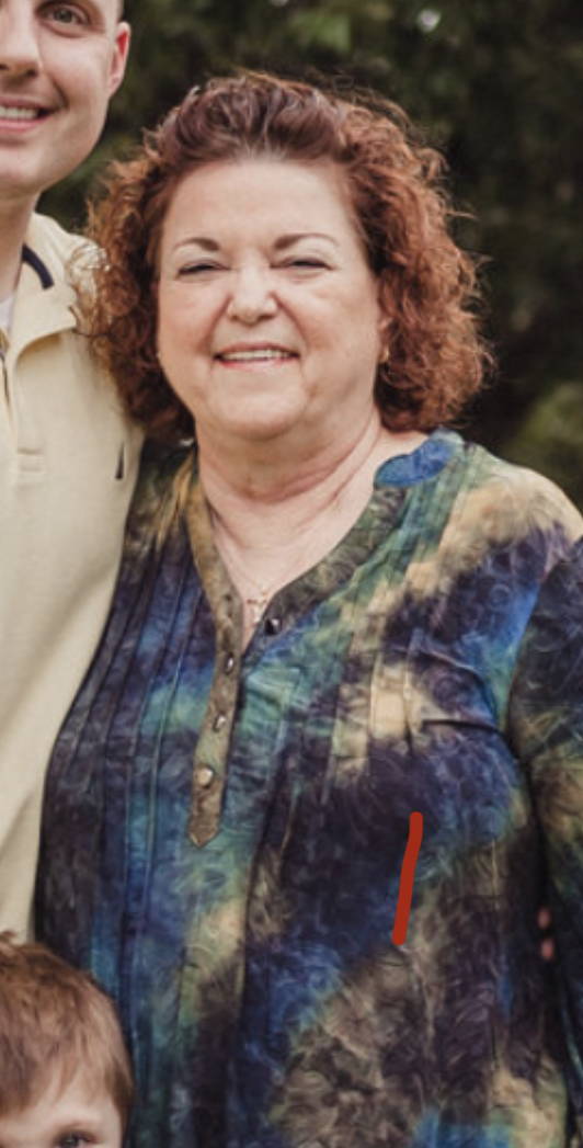 Colored pencil portrait of a grandmother holding a baby and a young boy.