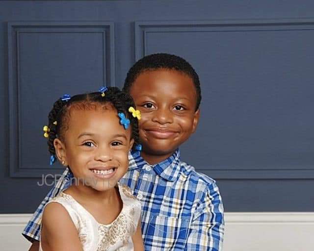 Colored pencil portrait of a woman with a young girl and boy.