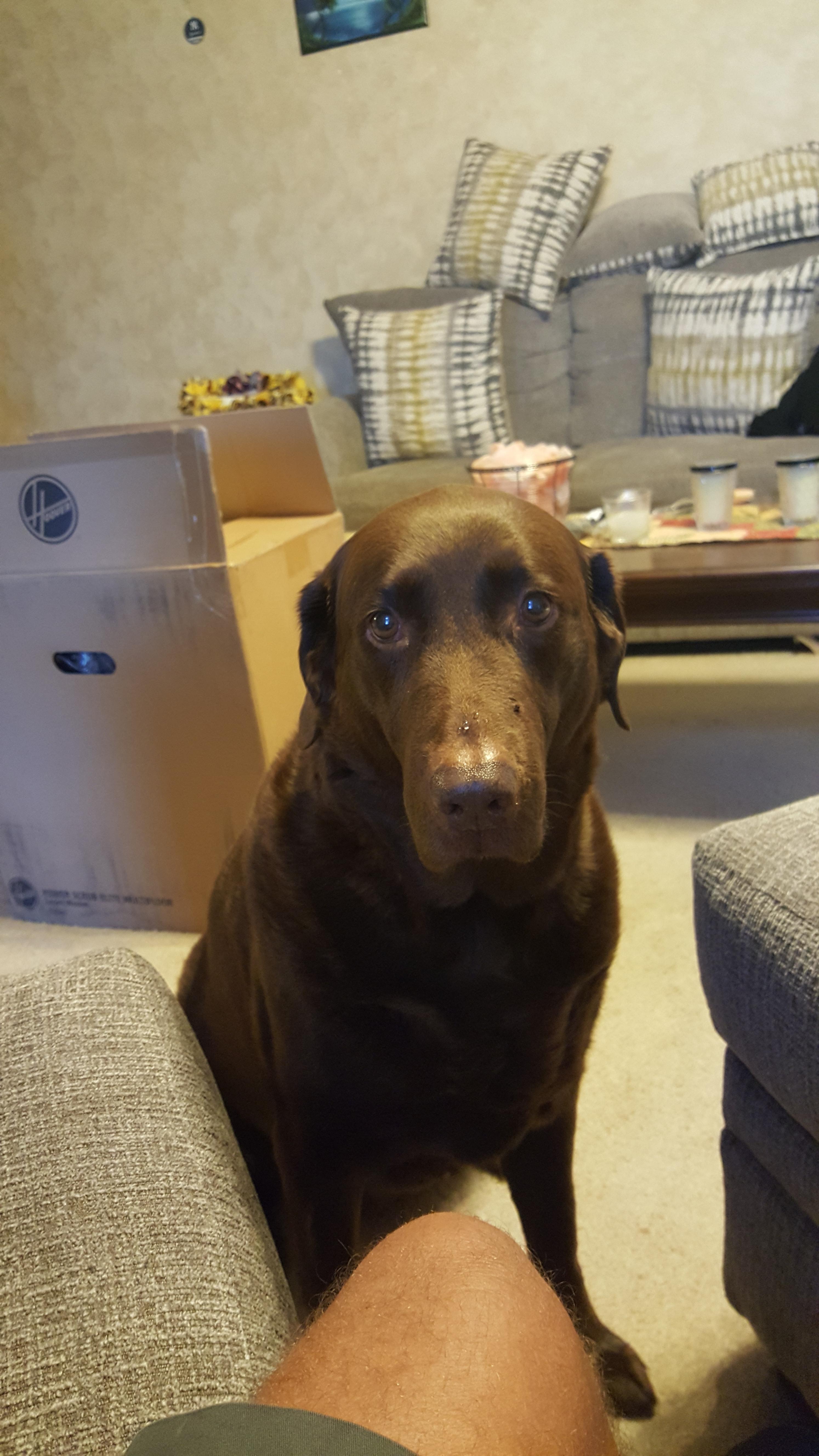 Colored pencil drawing of a chocolate Labrador Retriever.