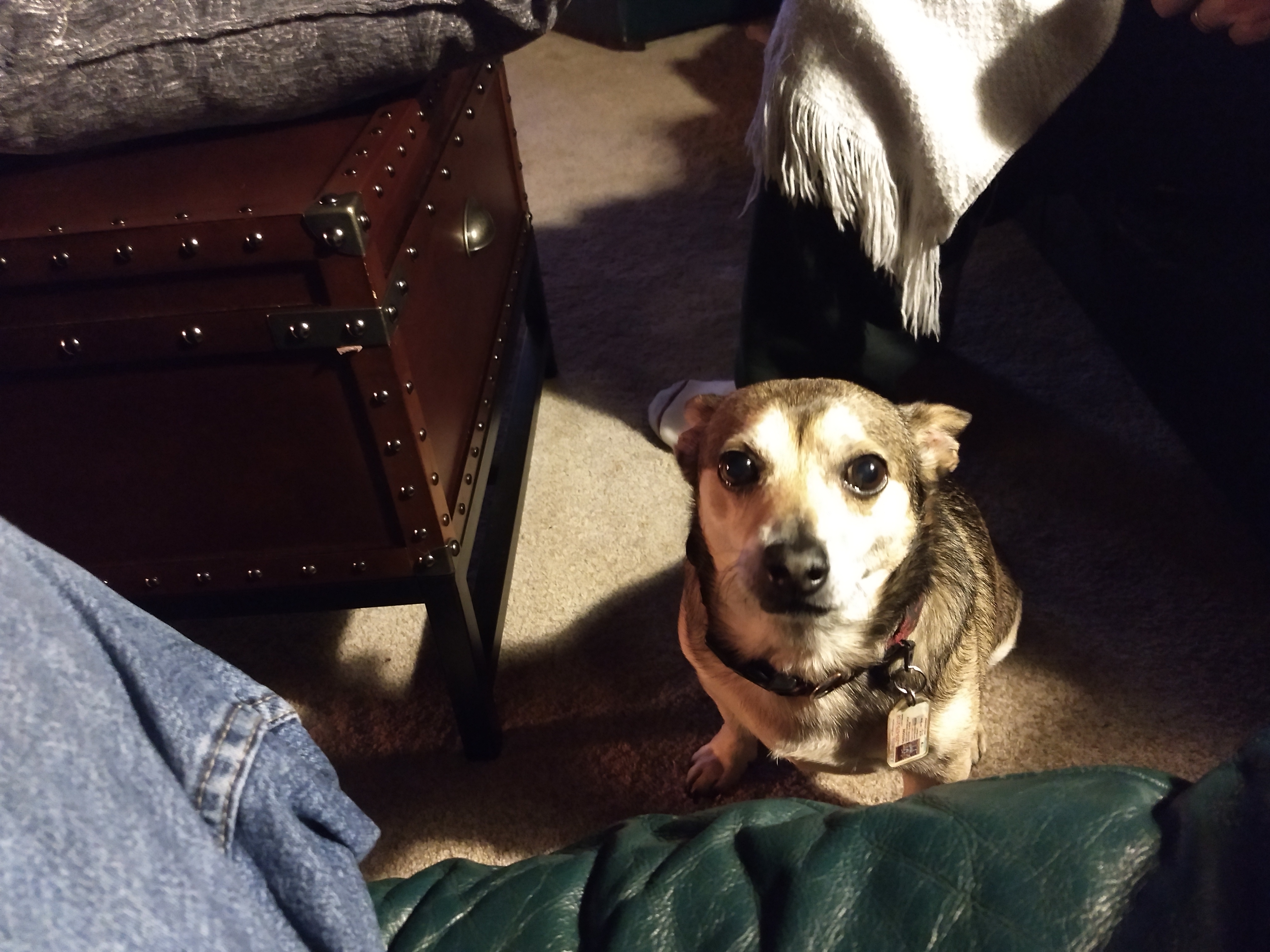 Colored pencil drawing of a dog wearing a collar and tag.