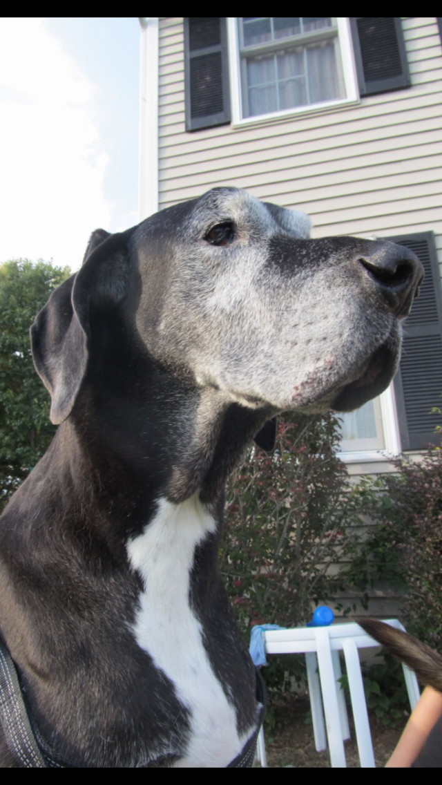 Colored pencil drawing of a Great Dane`s head and neck.