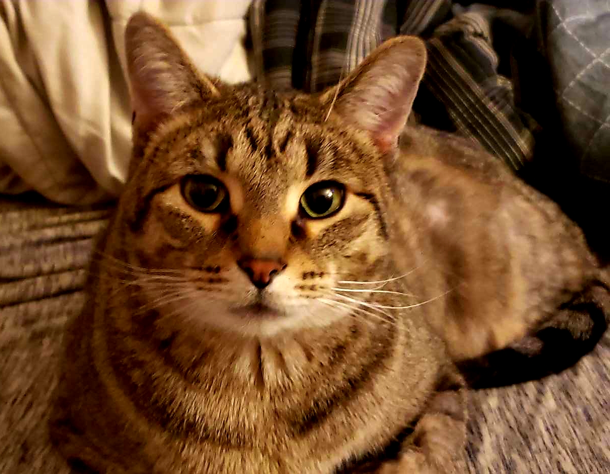 Colored pencil drawing of a tabby cat.
