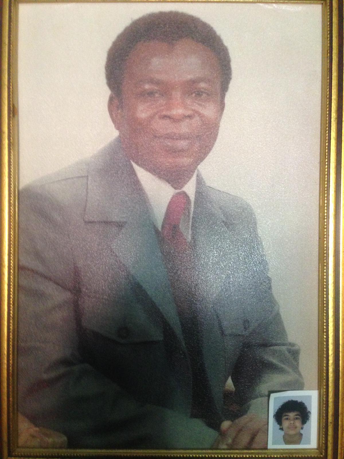 Black and white pencil sketch of a family portrait: two men, two women, and two young girls.
