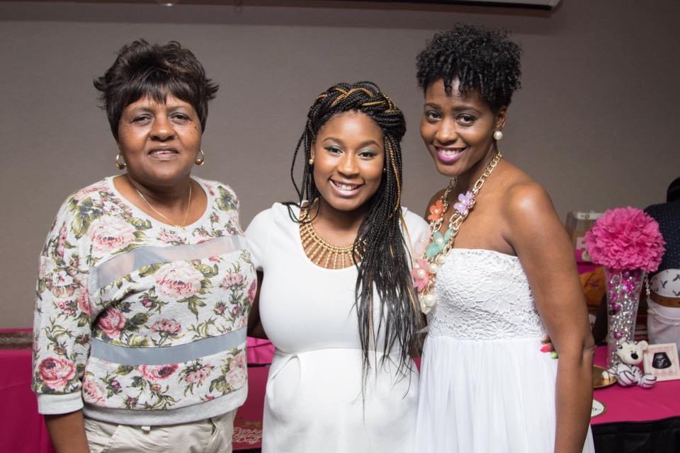 Oil painting portrait of three Black women, a grandmother and two generations of her descendants.