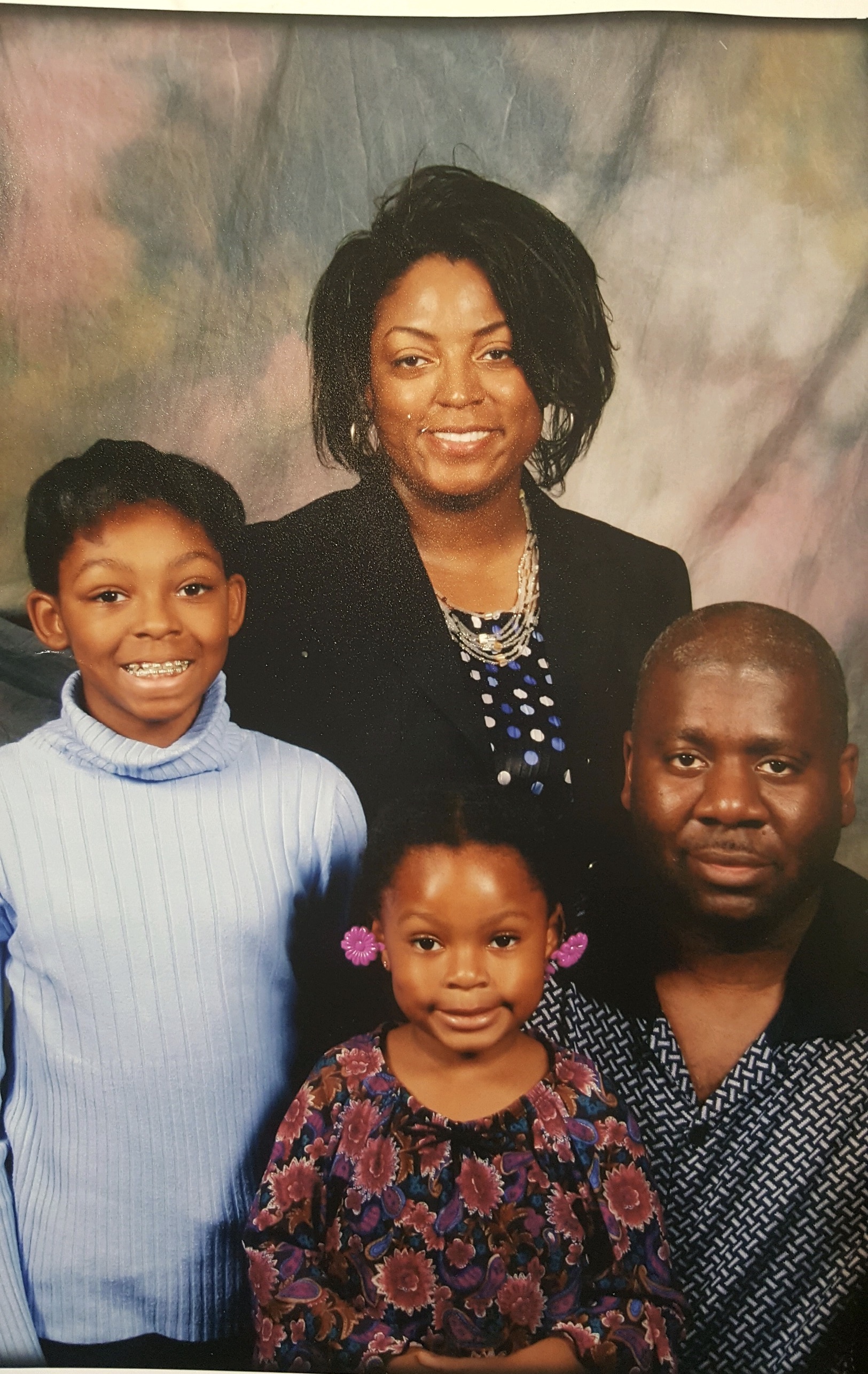 Painted portrait of a Black family: a mother, father, and two daughters.