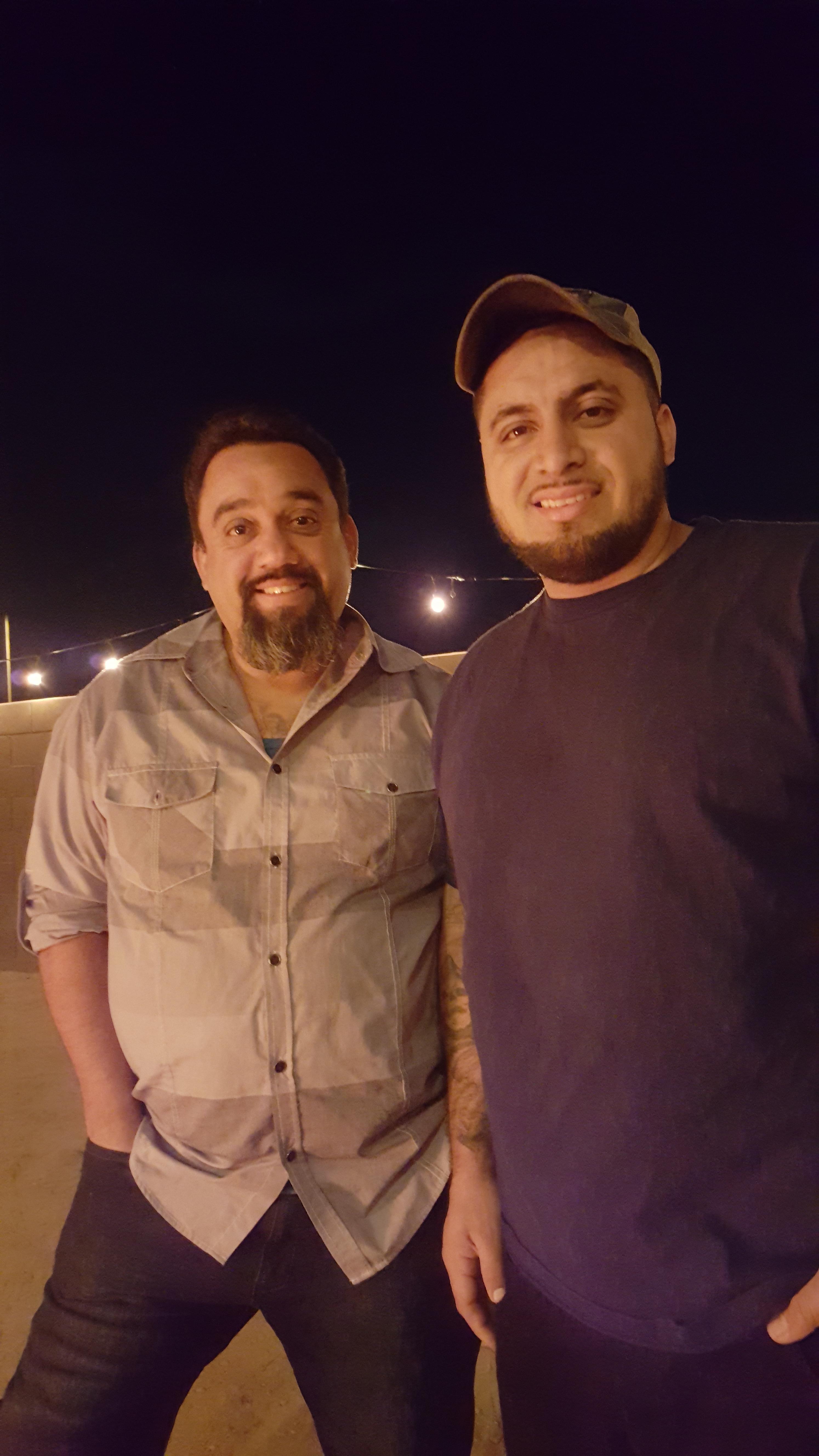 Painted portrait of a woman, a man wearing a baseball cap, and an older man.