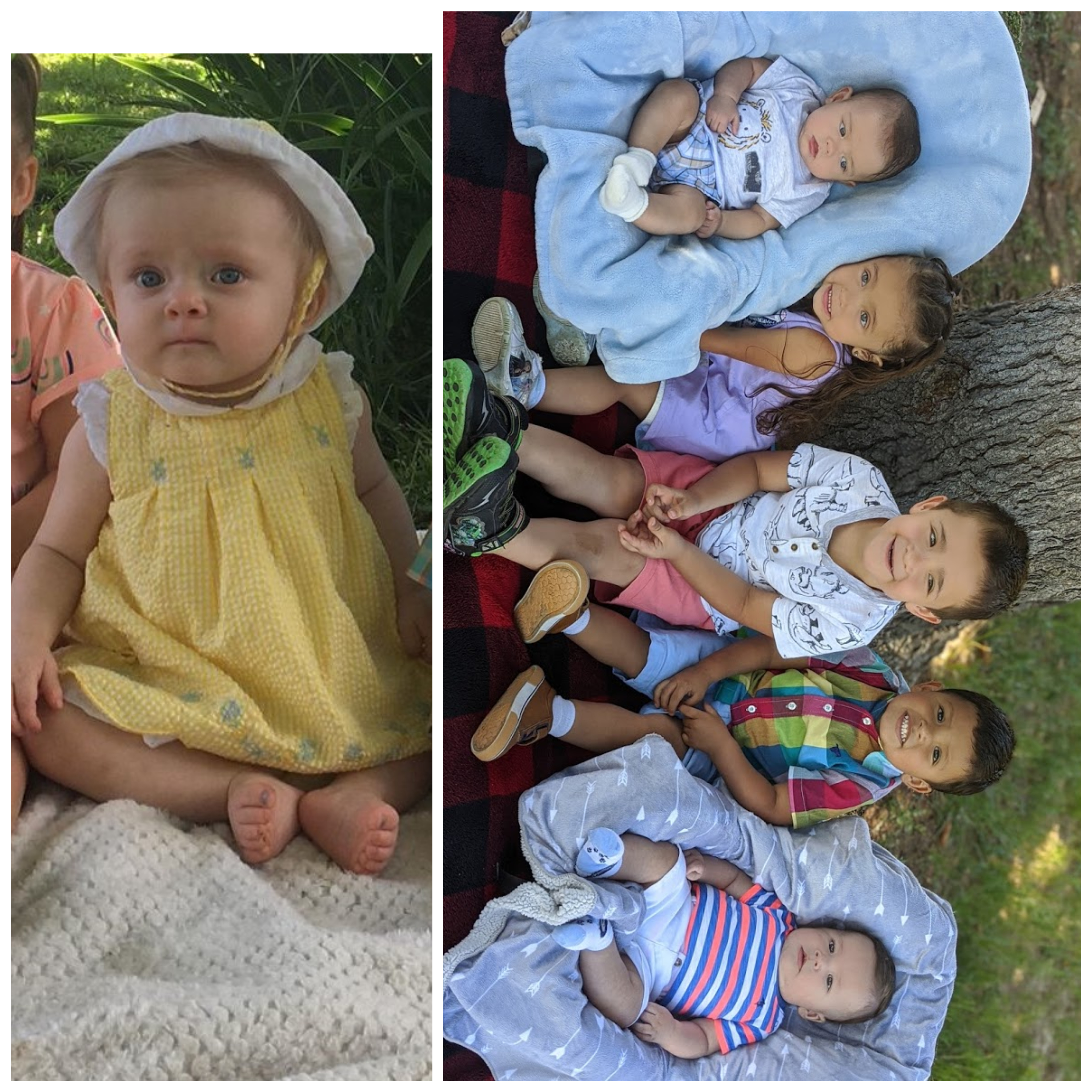 Black and white pencil sketch of a family portrait: two sons, their parents, and two daughters.