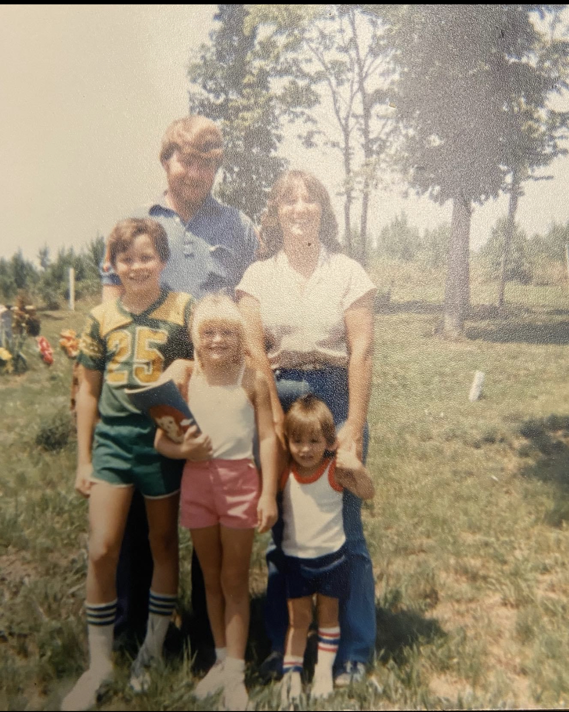 Painting of four people with angel wings and halos, names Tennille Dawn, Grandma Marie, Kenneth Wayne, and Jerome Joseph are listed.