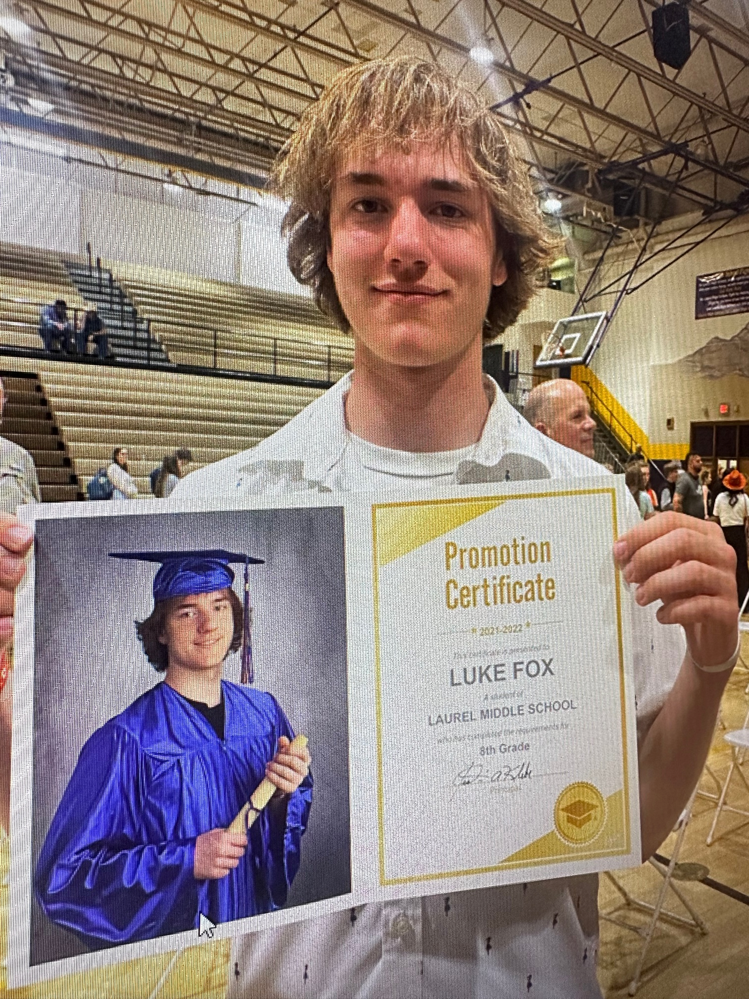 Painted portrait of a family: a female graduate, her parents, and a younger sibling.