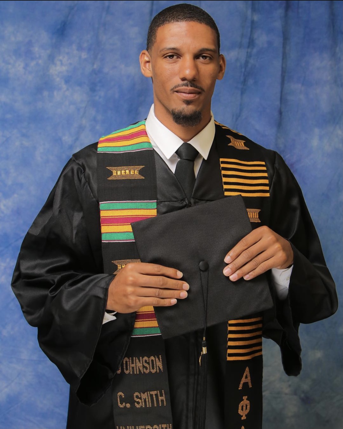 Portrait painting of a graduate and his father.