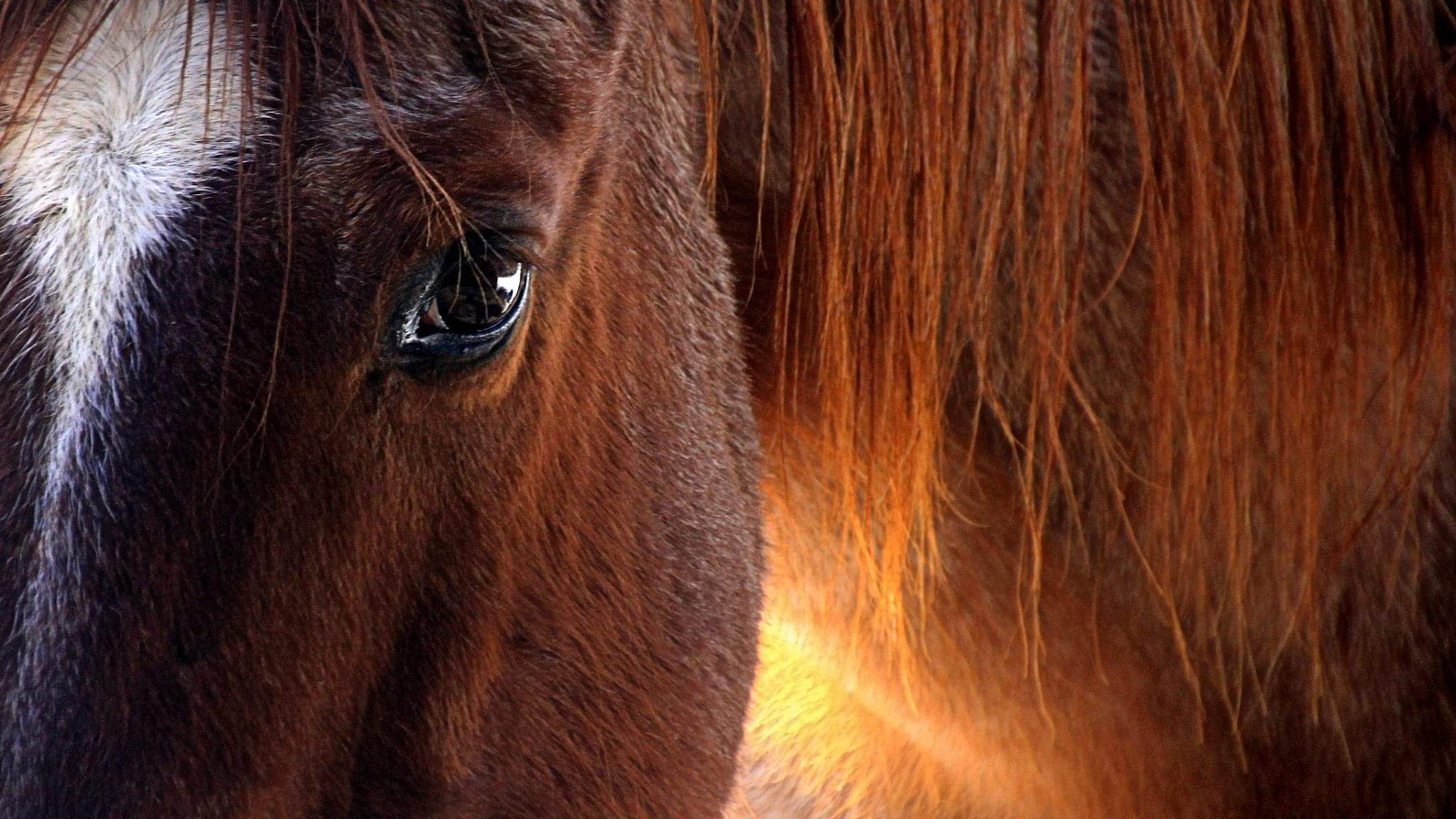 Painting of Abigail, a chestnut horse with a white blaze, wearing a bridle.