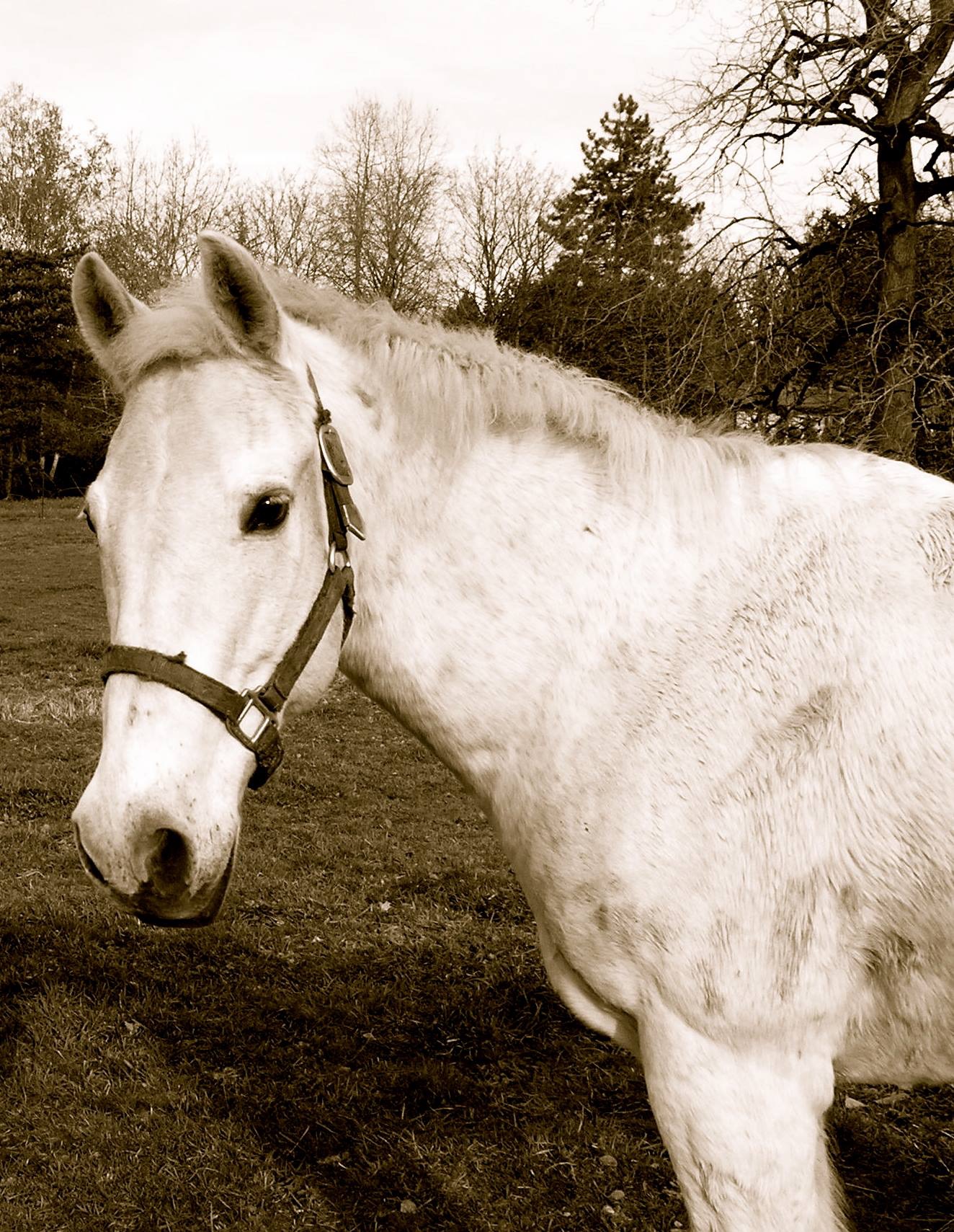 Painting of a white horse named Bubba