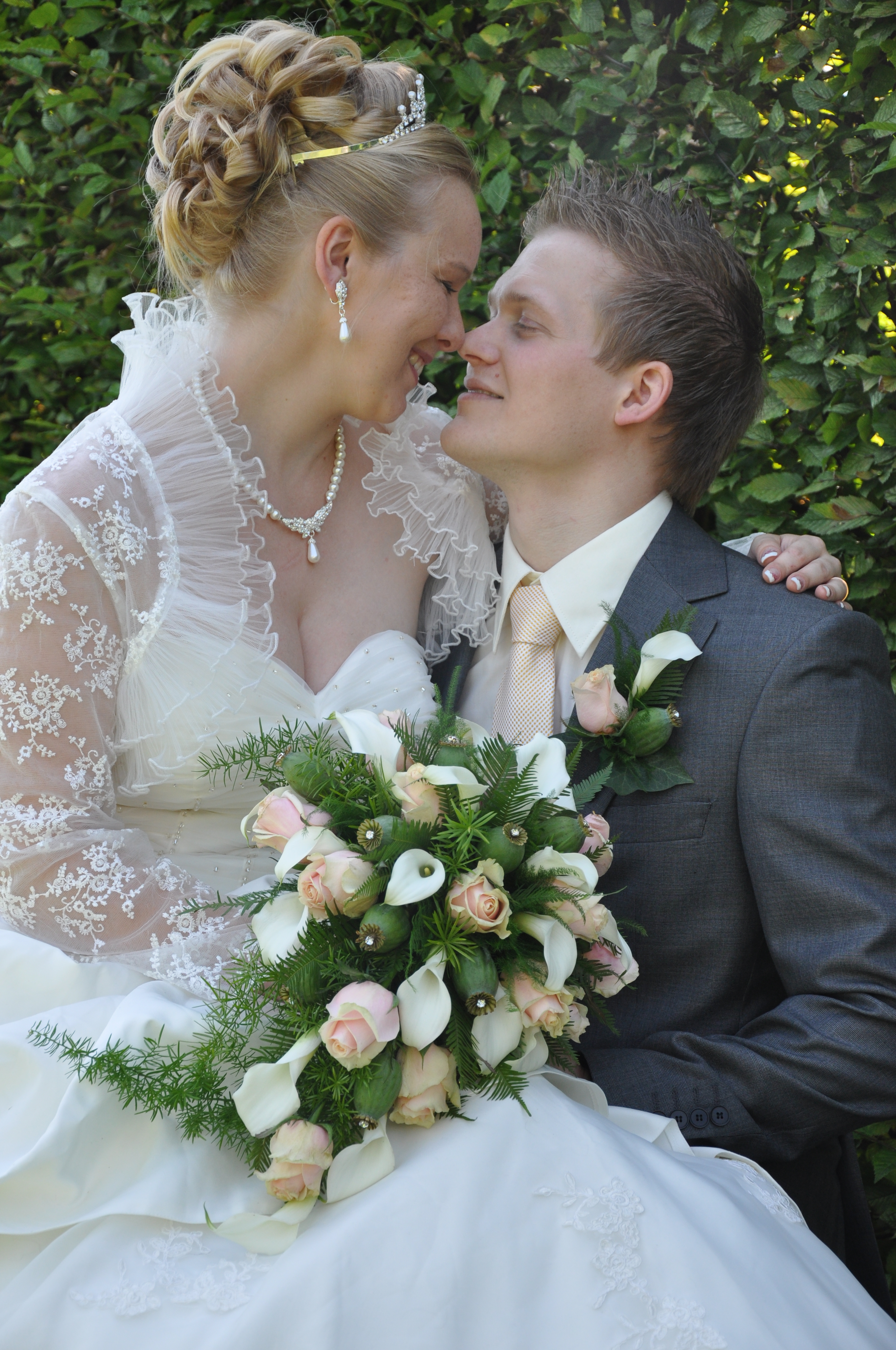Painting of a bride and groom on their wedding day.