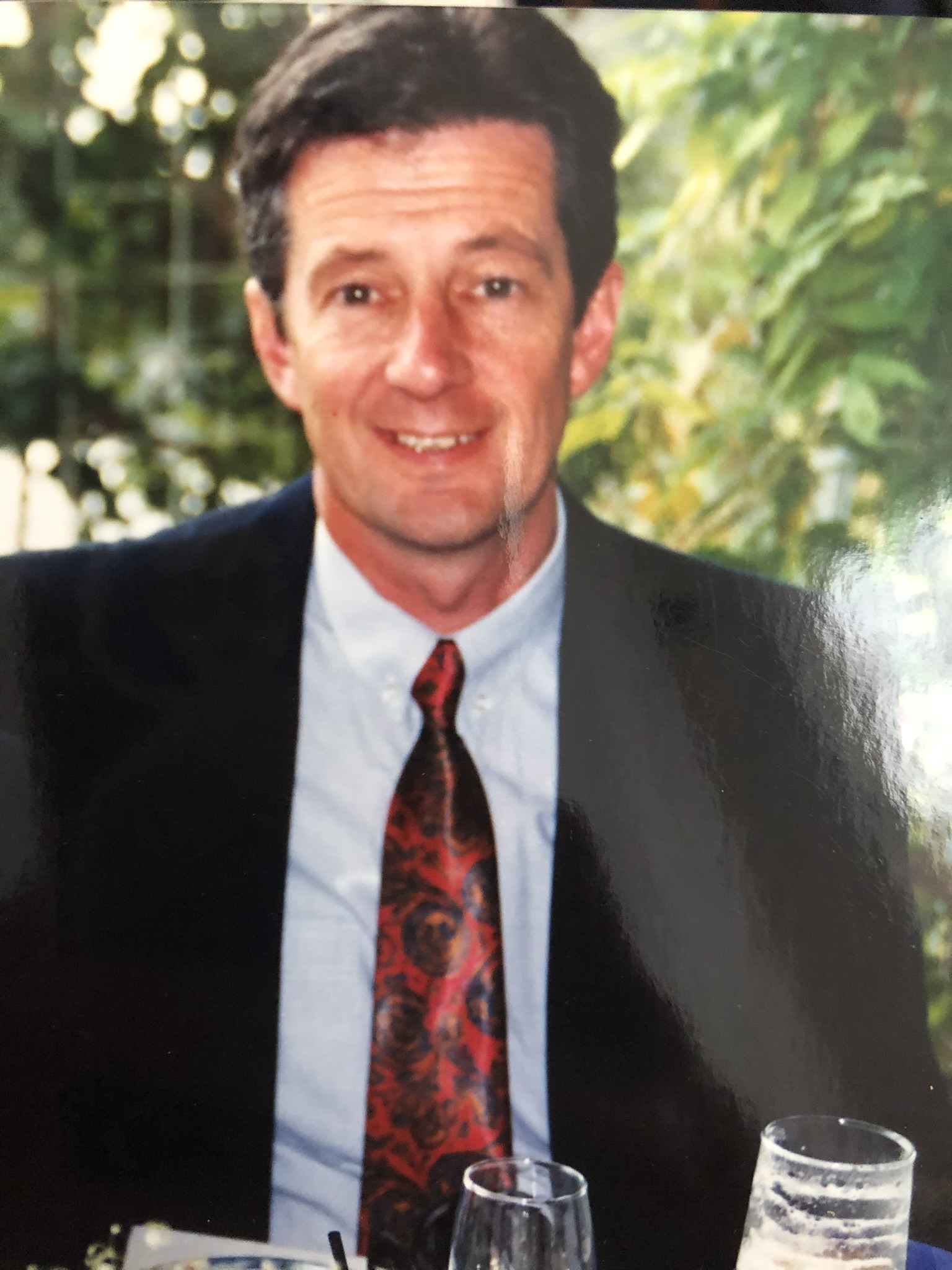 Portrait of an elderly woman wearing glasses and a patterned blouse.