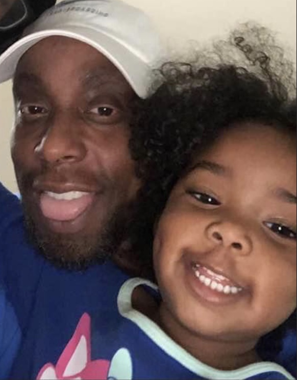 Painting of a man and young girl smiling together.
