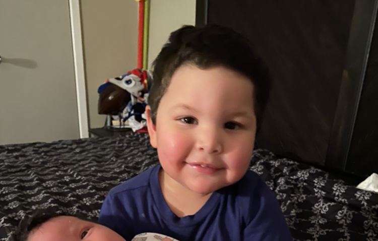 Oil painting portrait of a woman and young boy.
