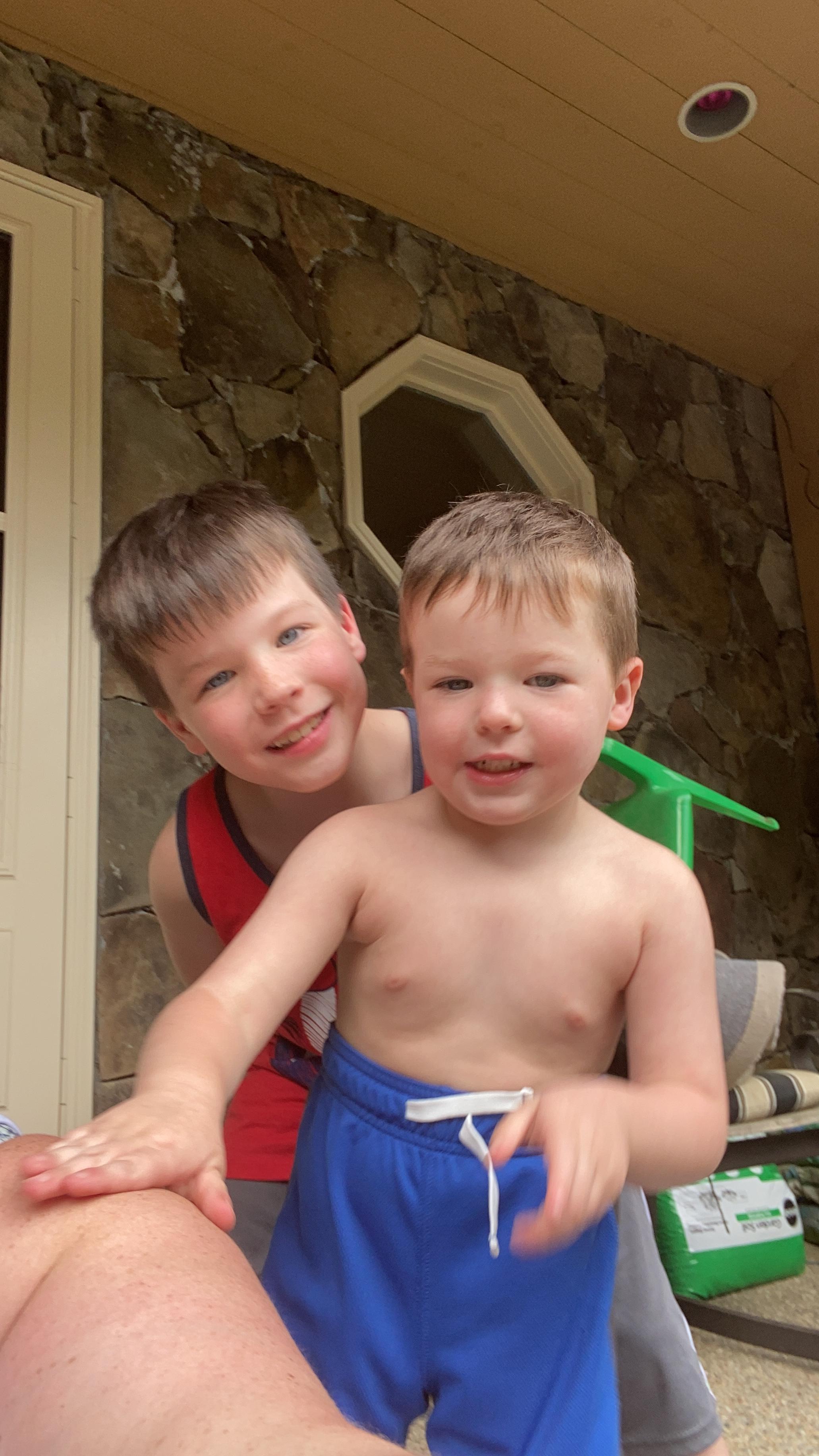 Painting of an older man with two young boys.