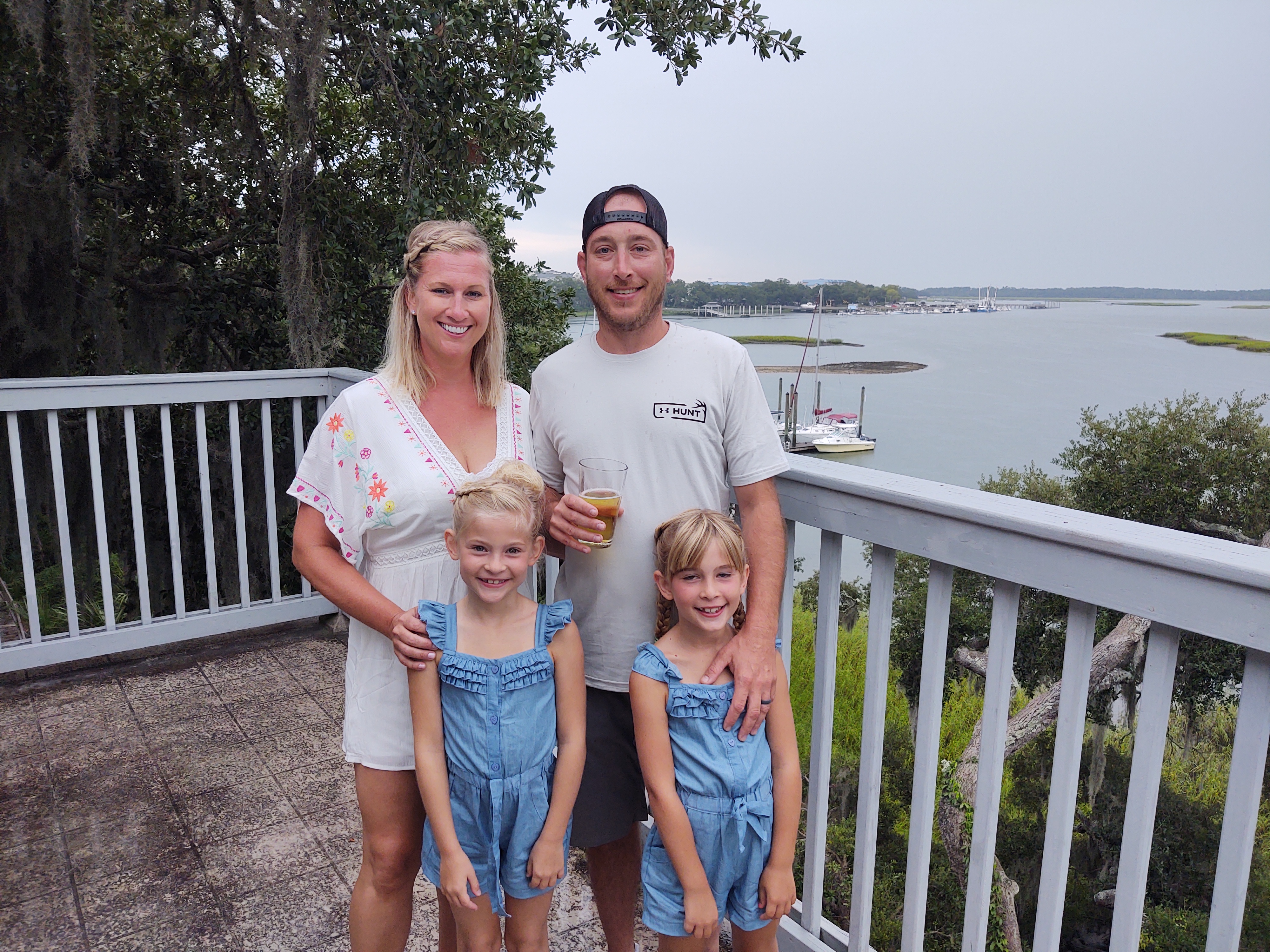Family portrait painting: parents and two young daughters.