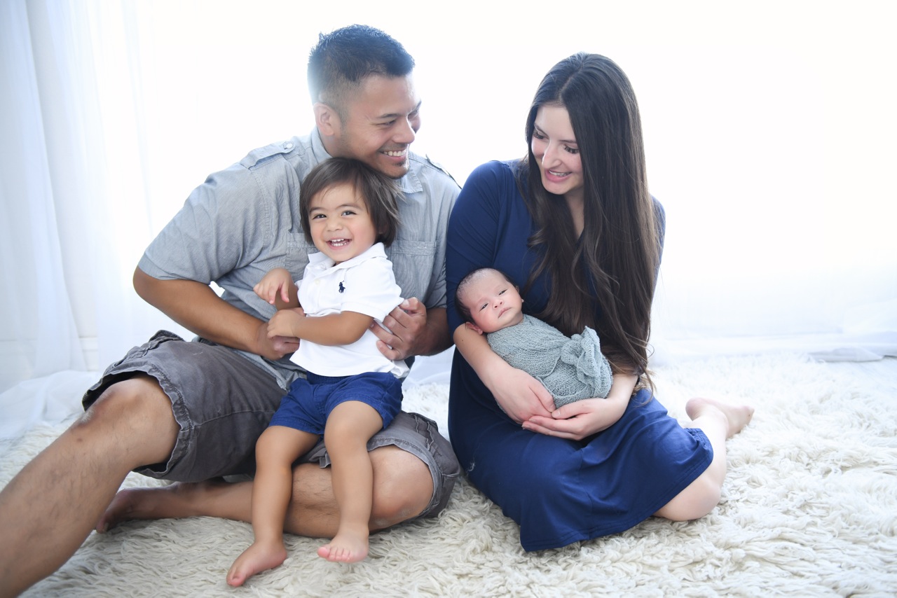 Family portrait painting: parents with toddler and newborn baby.
