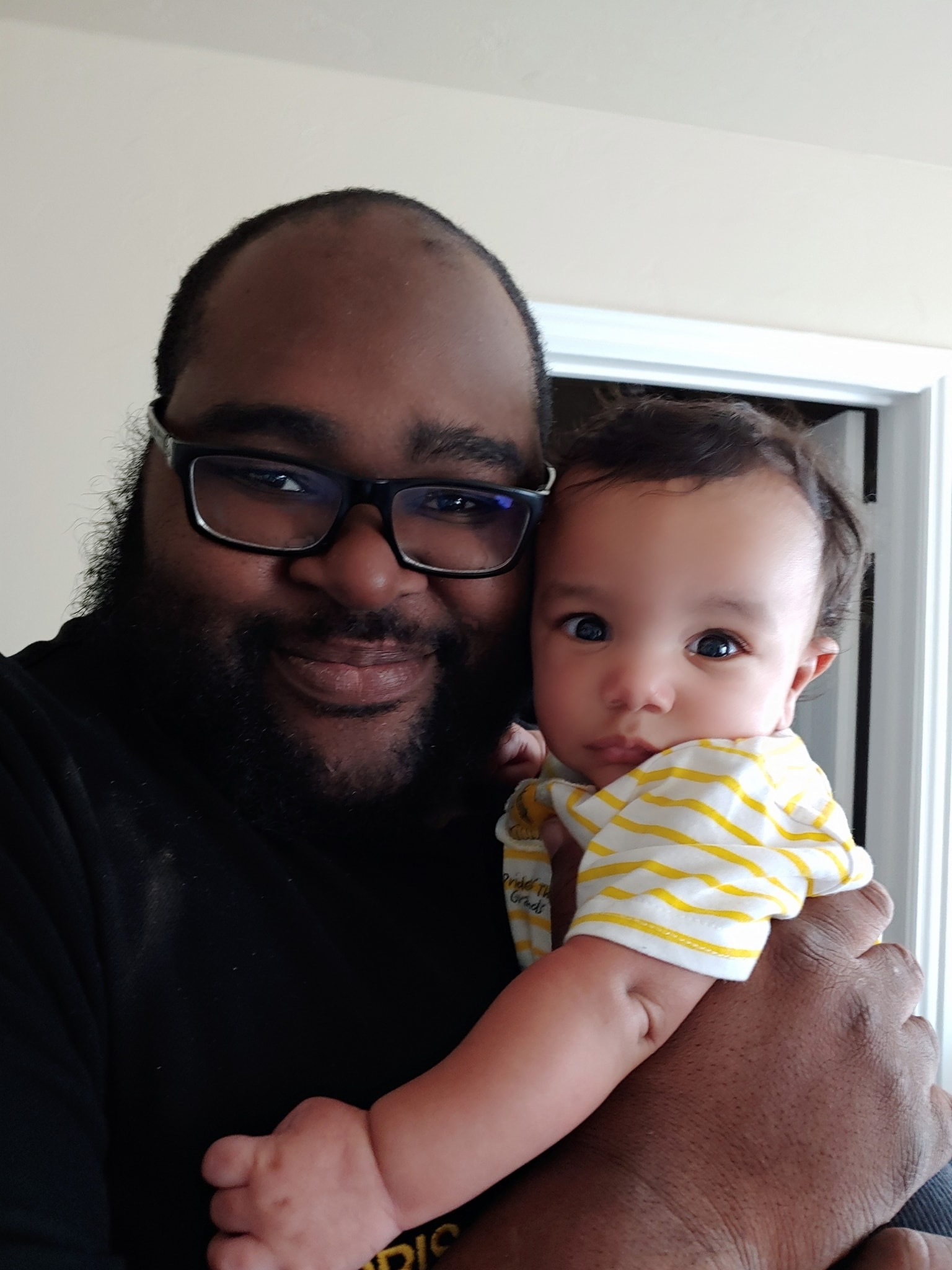 Pencil sketch of a man holding a toddler.