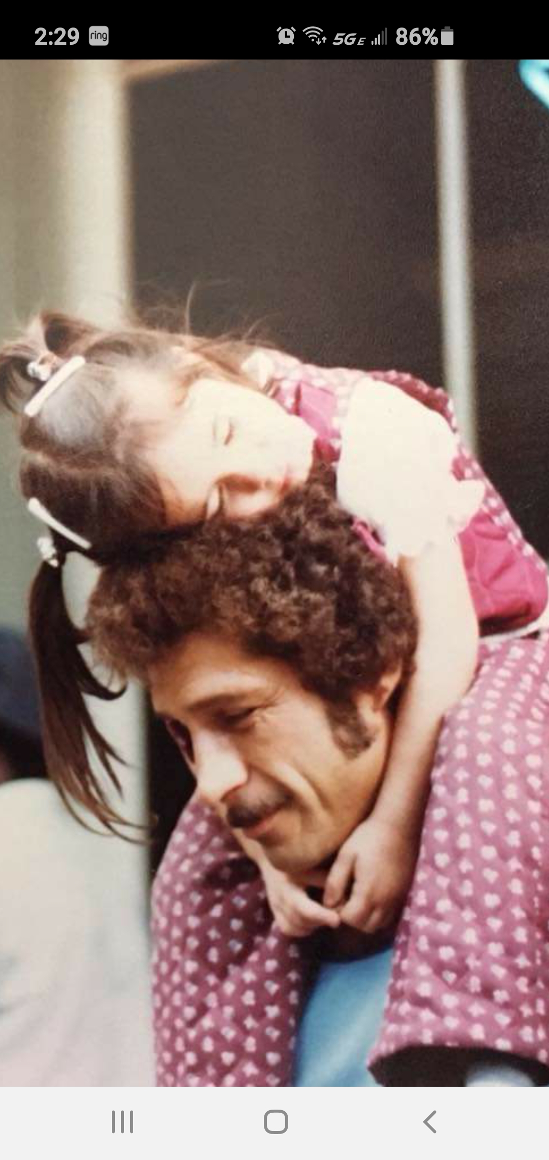 Painting of a young girl sleeping on a man`s shoulders.