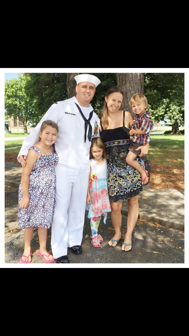 Painting of a Navy sailor with his wife and three children.