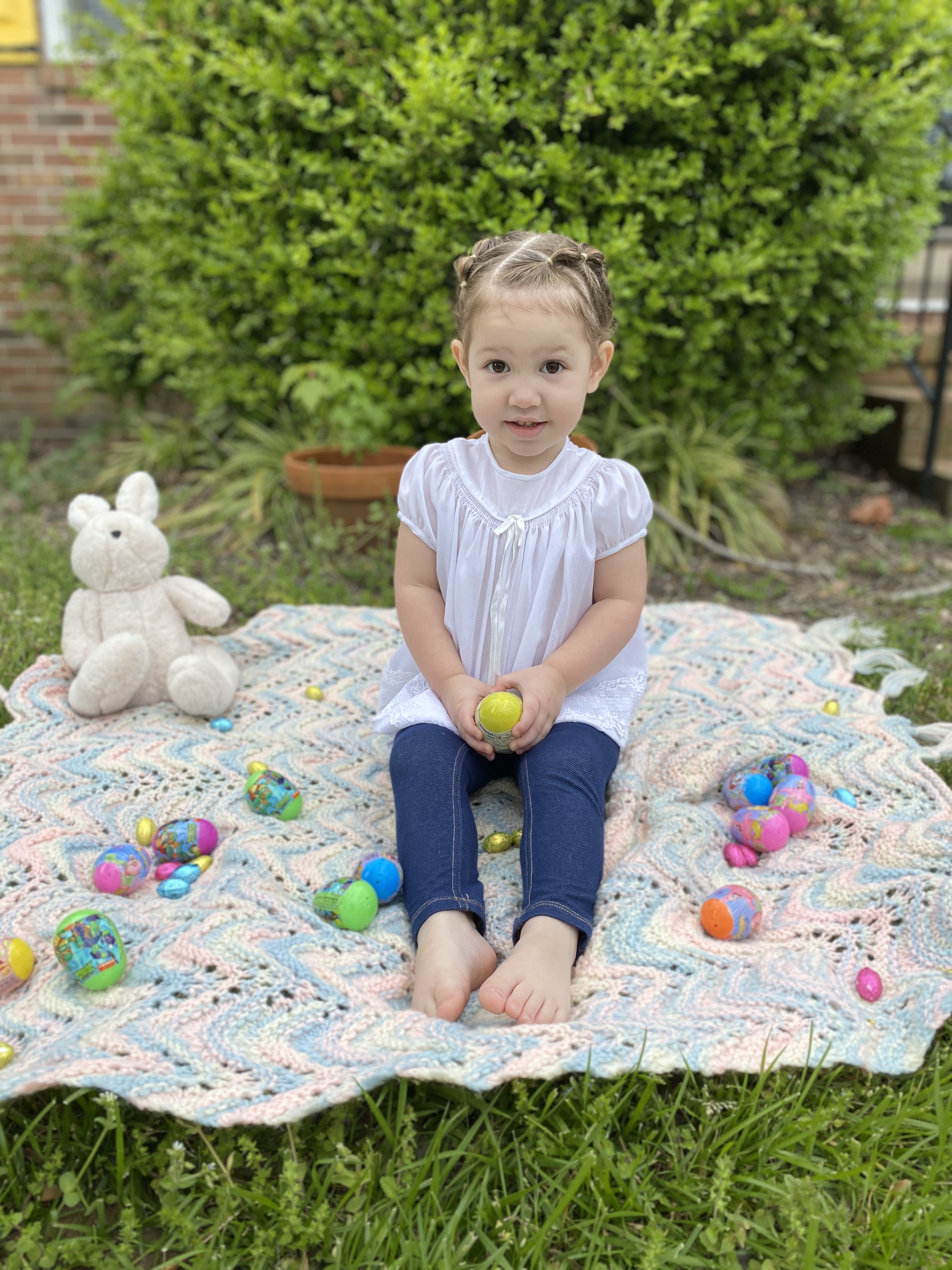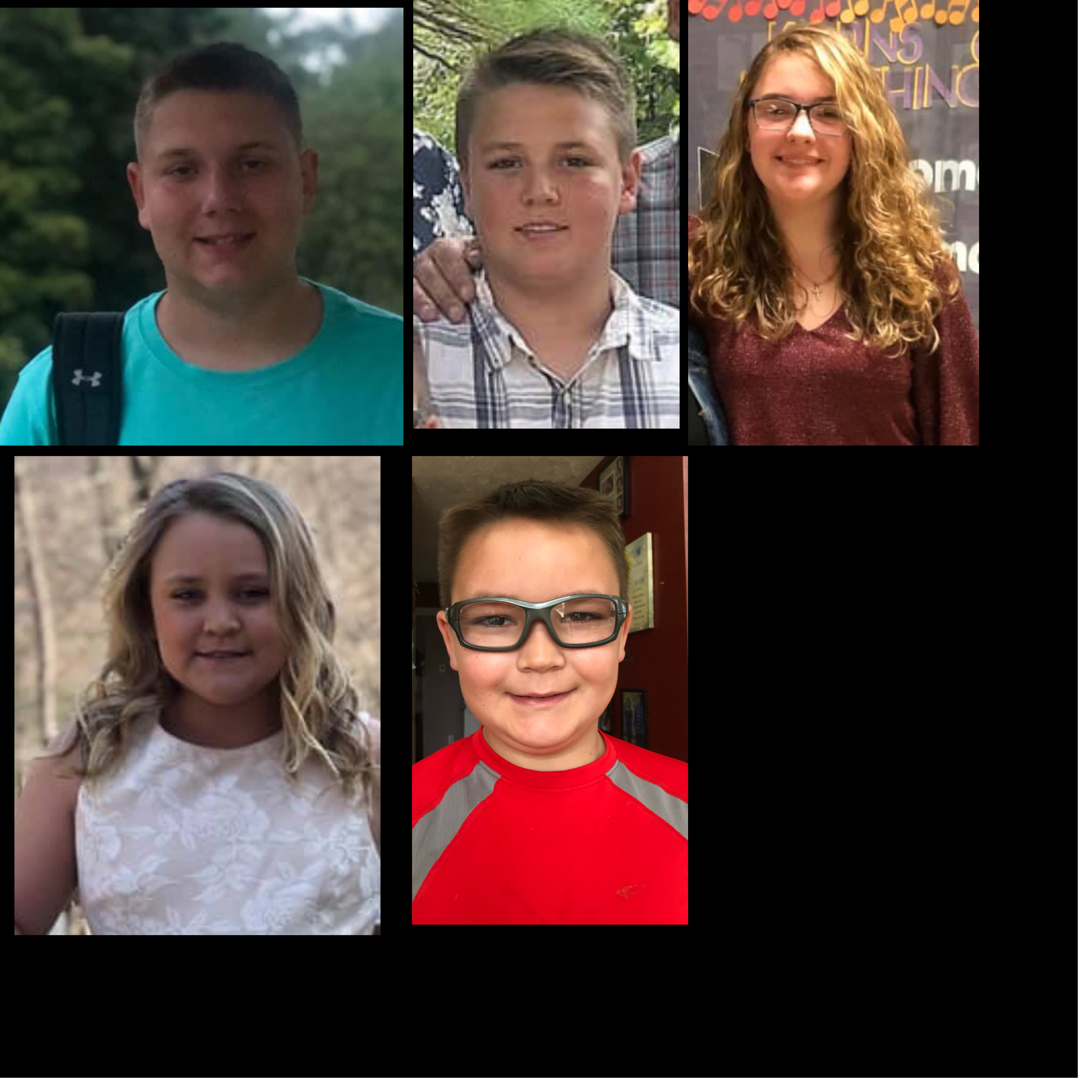Family portrait painting, parents and two young daughters in yellow clothing.